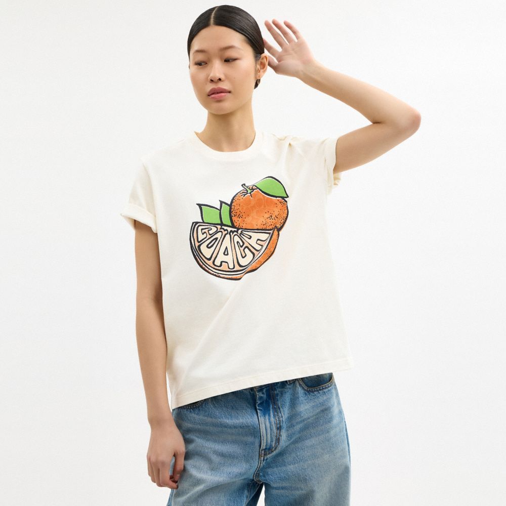COACH®,Orange Classic T-Shirt In Organic Cotton,,Front View