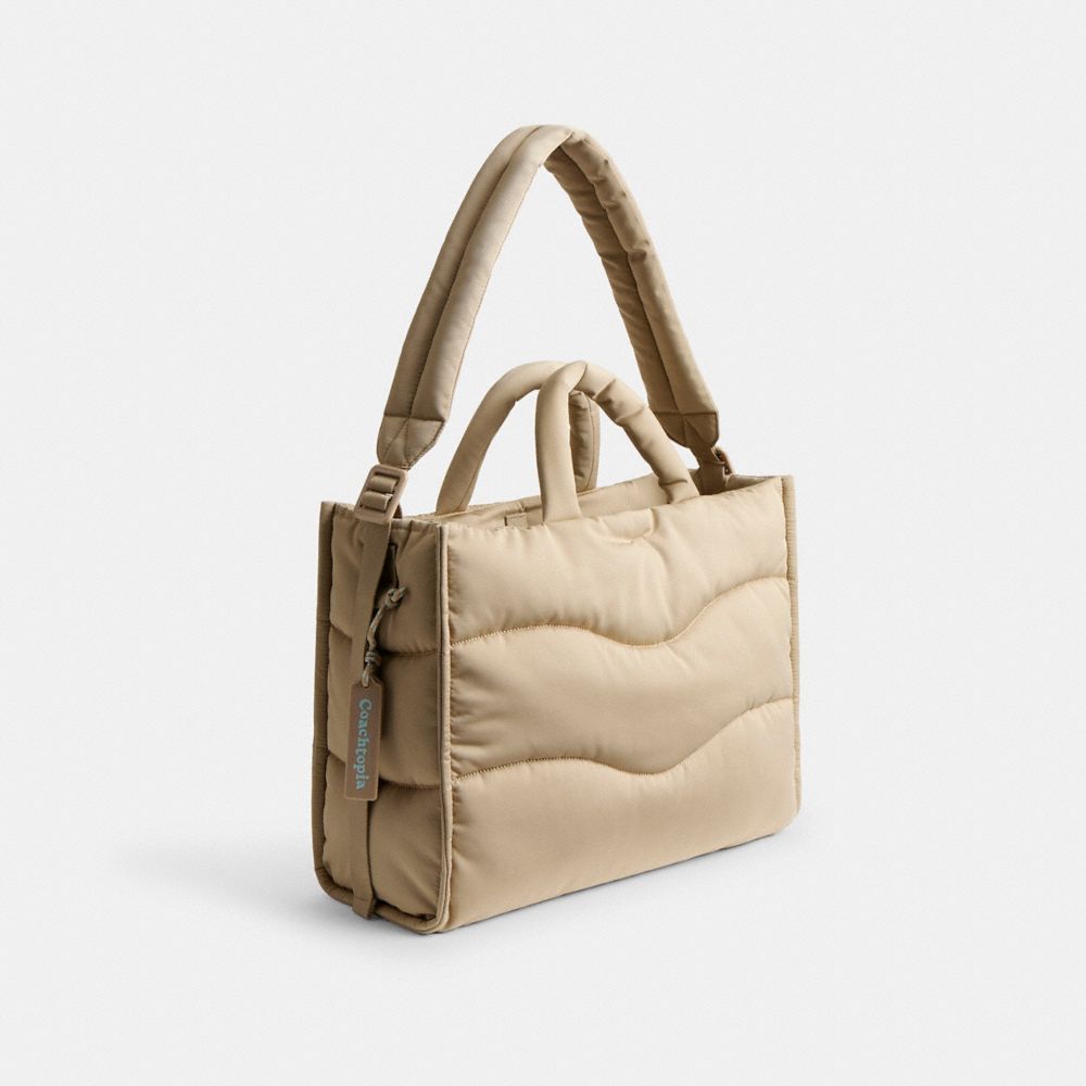 Many uses. Many lives. The Coachtopia Loop Tote is big enough to carry your laptop, books and more. This version is crafted in 100% recycled PET plastic (rPET) and features wavy detailing and an adjustable strap.