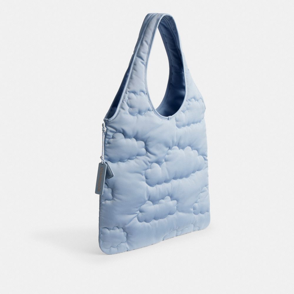 Right on so many levels: the Coachtopia Loop Flat Tote is an ultra-versatile everyday bag with two large handles designed to slip neatly over the shoulder and plenty of room for your laptop, books and more. This version, crafted with 100% recycled PET plastic (rPET), excluding the cording, comes in a grungy quilted plaid pattern with cloud details.