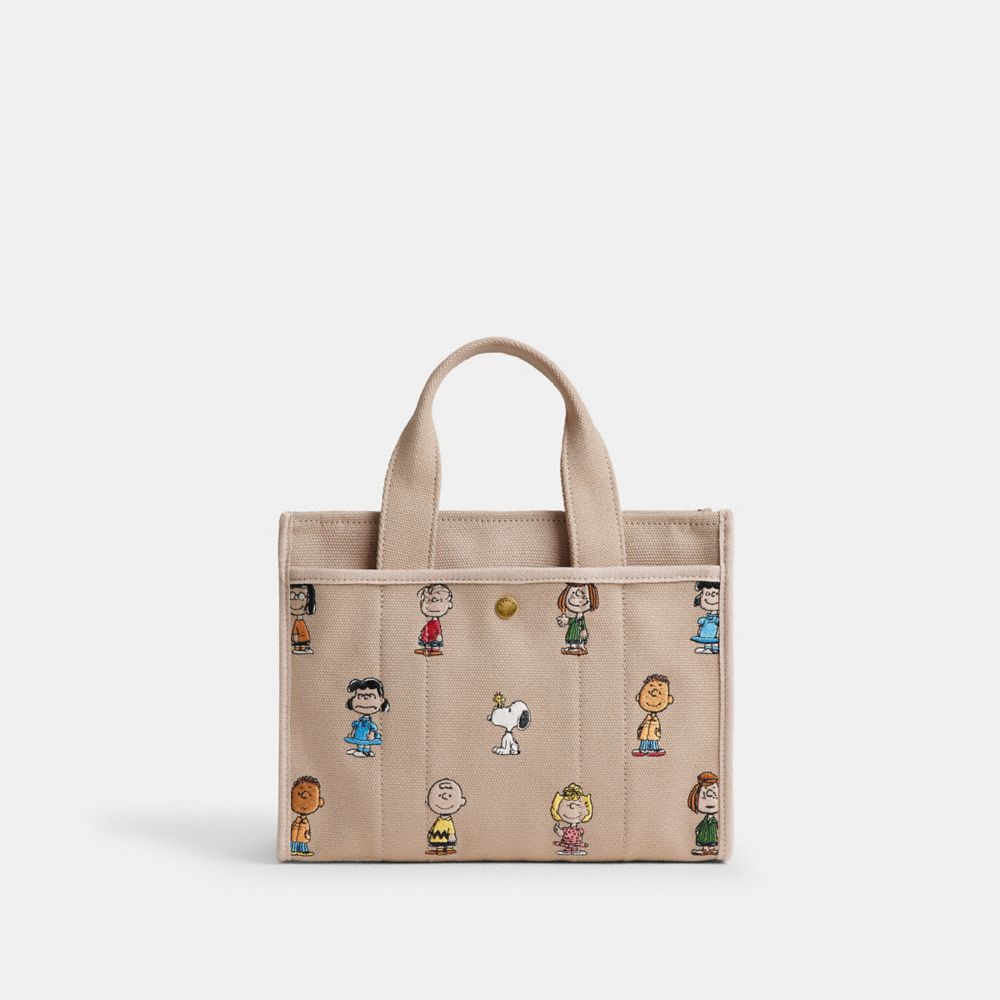 Celebrating years of memories, laughs and lots of Snoopy dances, Coach commemorates the 75th anniversary of “Peanuts" with a special collection starring Charlie Brown and friends. Carry as much (or as little) as you like with our lightweight Cargo tote. Featuring the beloved Peanuts gang, this compact 26 is detailed with our cursive Coach script embroidery and iconic turnlock closure. It has an open interior with room for an iPad, two outside pockets for easy organization and a removable recycled webbing strap for shoulder or crossbody wear. Exclusive of trim, hardware, lining, and straps, this versatile canvas carryall is crafted with cotton sourced from farms that use regenerative agricultural practices—those that help to maintain and rejuvenate land, increase biological diversity and soil health, and could lead to increased carbon absorption. It reflects our ongoing commitment to helping reduce our impact on the planet.
