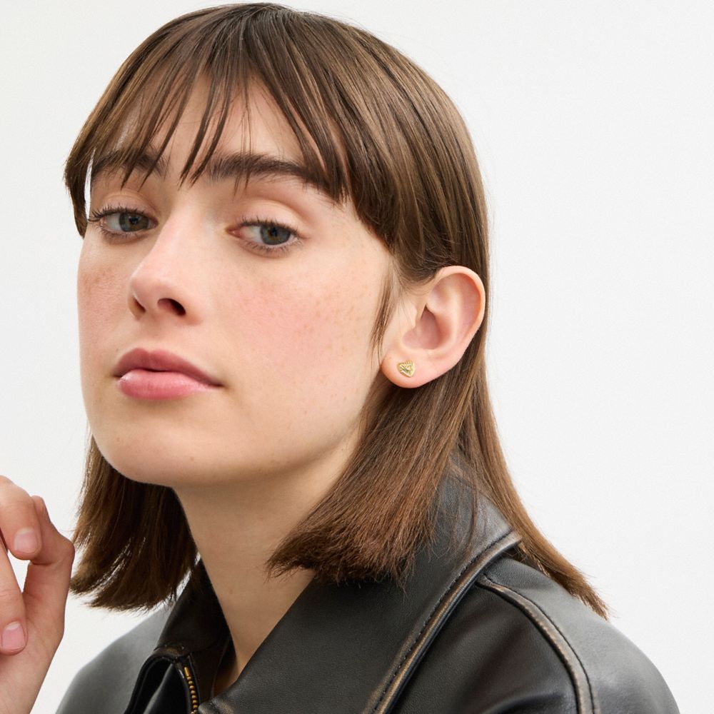 A lot to love. These ribbed heart stud earrings feature our Signature for a playful Coach look. The polished pair is finished with a round clutch closure.