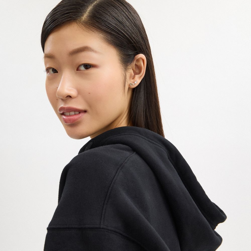 These crawler earrings feature an array of iconic Coach motifs along with perfectly placed pearls and sparkling crystals. Designed with one post, the pair is finished with a round clutch closure.