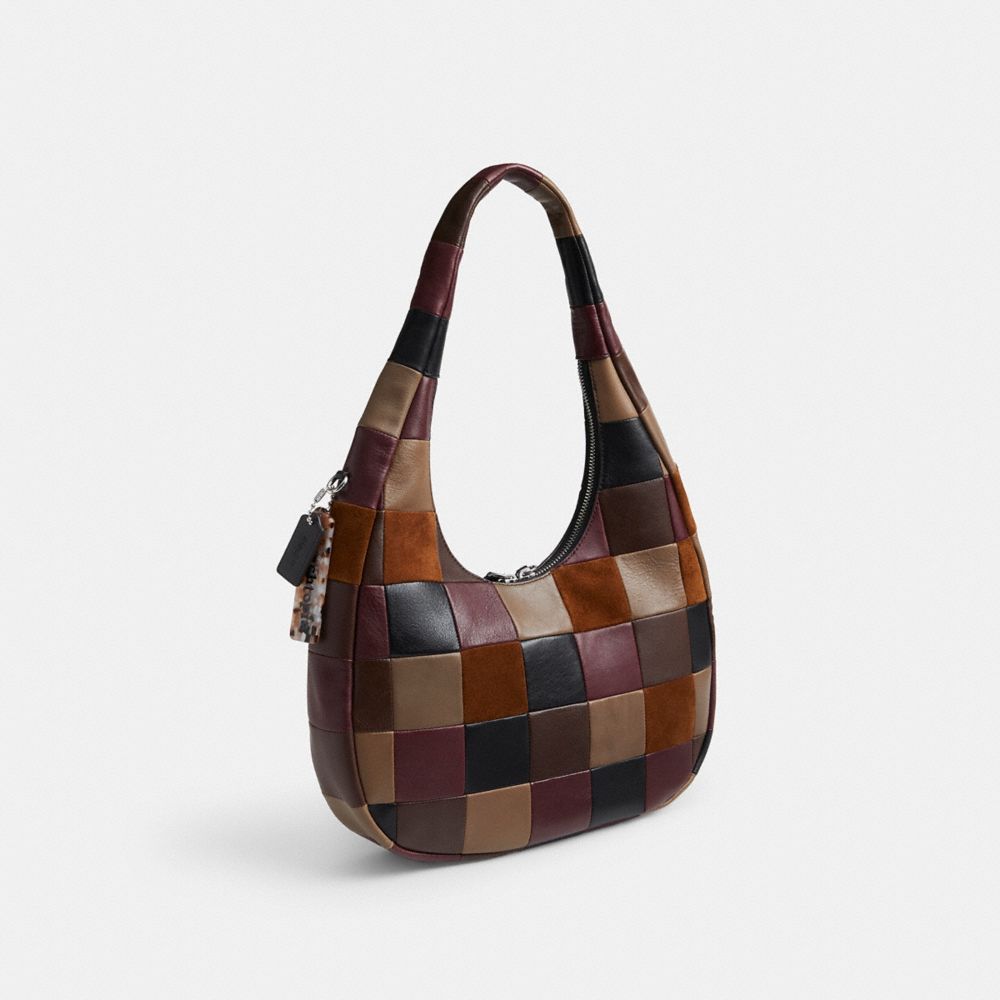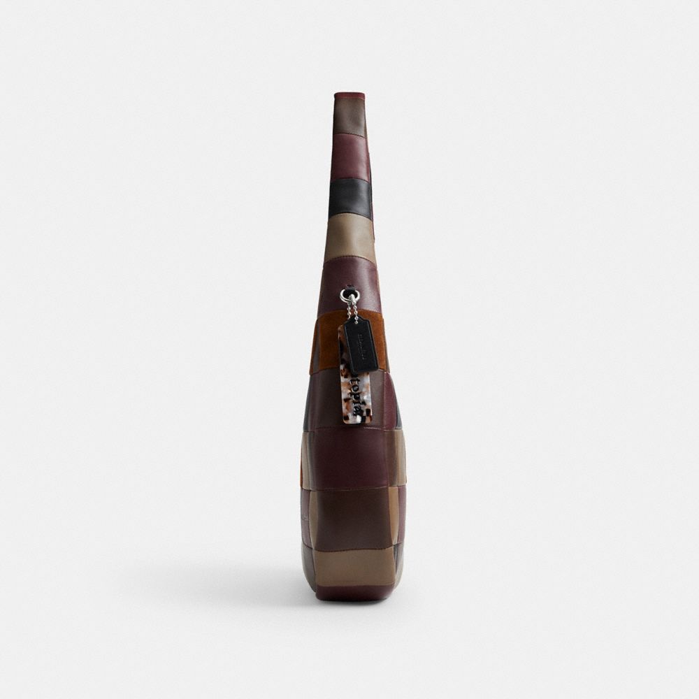 This shoulder bag is crafted of the full grain leather and suede scraps left over after a Coach bag has been cut from a leather hide. A fashion statement, it carries whatever you need for a day out (even a tablet) and secures with a zip-top closure. Each bag will continue to develop more character over time.