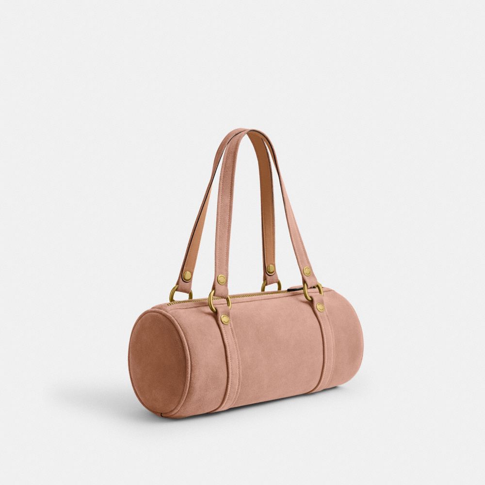 The Kisslock Barrel Bag is part of The Coach Originals, a collection of archival-inspired styles that celebrates our legacy and authentic New York heritage. The elongated cylindrical carryall is based on a 1973 Coach design reimagined for today. Crafted of velvety suede and soft full grain leather, it features an outside pocket secured by our kisslock closure—an innovative heritage detail inspired by vintage coin purses. The zip-top silhouette sits just beneath the underarm for hands-free convenience or can be carried by the top handles. Some styles are just too good to leave in the archives.