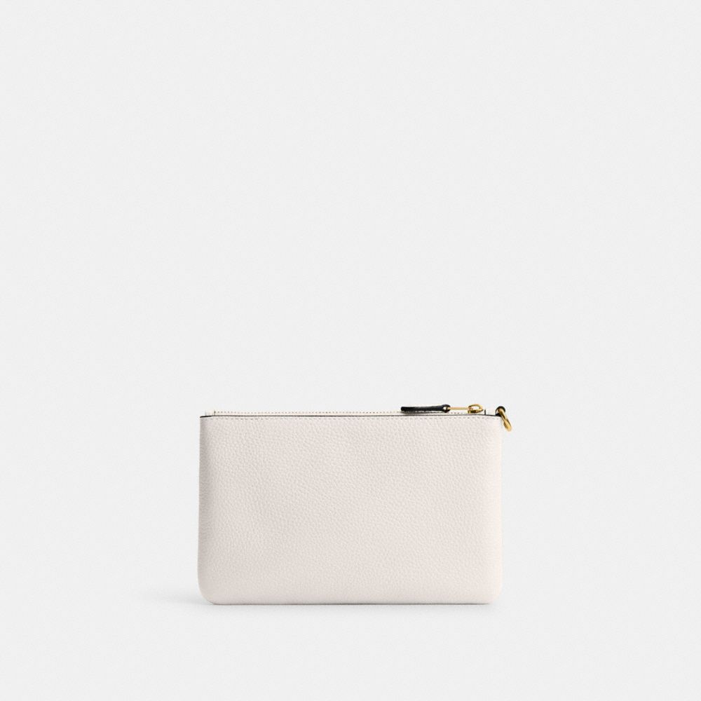 Crafted of polished pebble leather detailed with our Signature hardware, this wristlet is perfectly sized for cards, cash and a phone. Wear it on your wrist or clip it inside a larger Coach bag.