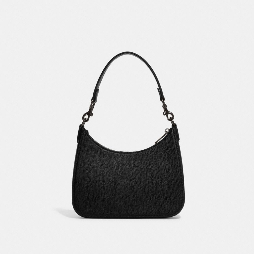 COACH®,Hobo Crossbody Bag,Canvas,Leather,Crossbody,Logo,Metal,Scratch Resistant,Casual,Black,Back View