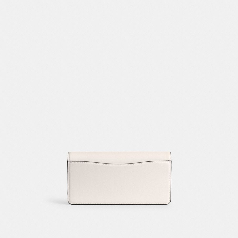Form, function and craftsmanship combine on our refined leather Evie Long Wallet. Detailed with our Signature hardware, it has a convenient outside pocket and a spacious interior with multiple card slots, a billfold compartment and a zip pocket for coins, plus space for the largest size phone. Toss in a bag, carry as a clutch or wear crossbody with the detachable gleaming chain strap.