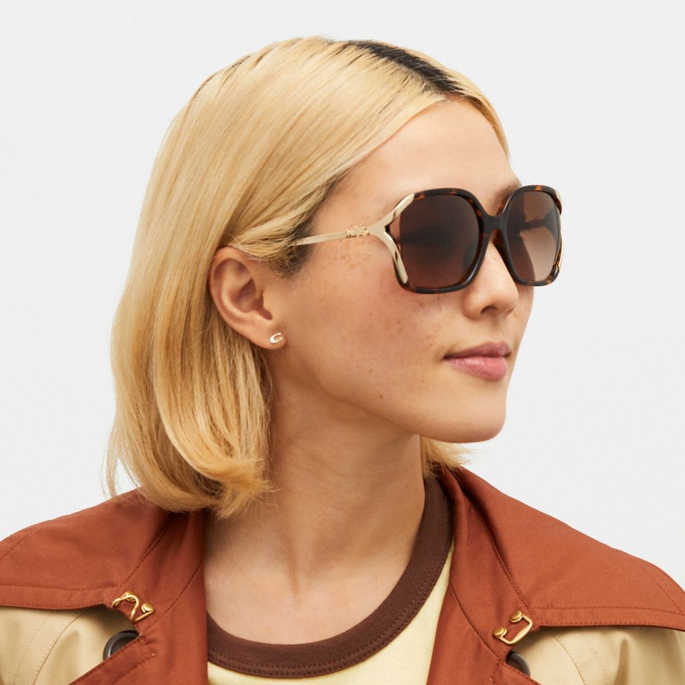 Polished hardware adds a touch of shine to these dramatic oversized frames. They're finished with a three-dimensional take on our iconic Horse and Carriage motif.