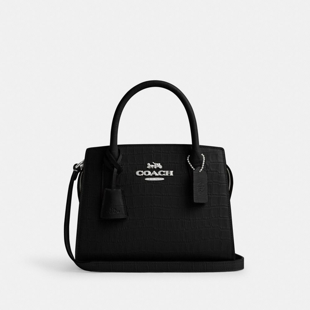The Andrea Carryall Bag is crafted of crocodile-embossed leather and smooth leather. This leather crossbody bag is perfect for holding all your essentials, with a spacious interior that can fit your wallet, phone, and even a small notebook. It comes with a detachable strap, giving you the freedom to wear it on and off your shoulders at your convenience. It also features a zip closure and multiple pockets to keep your items organized and secure.