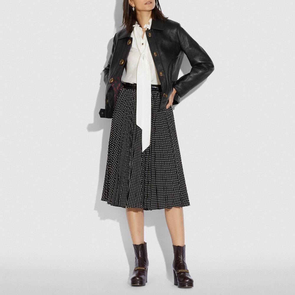 Slightly-oversized, this biker-inspired jacket is crafted of buttery soft bonded leather for a lightweight feel. It’s finished with flap front snap pockets and our iconic turnlock closures.