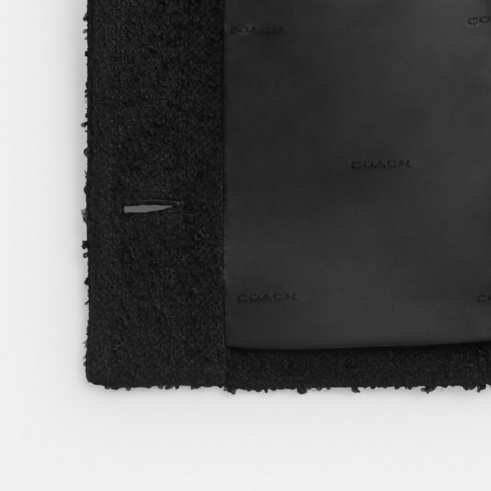 COACH®,Boucle Jacket,Acrylic,Cotton,Polyester,Wool,Jacket,Button,Mixed Media,Sustainable,Day Party,Black,Inside View,Top View