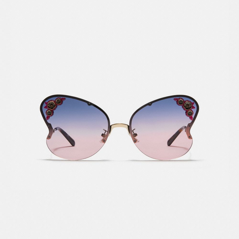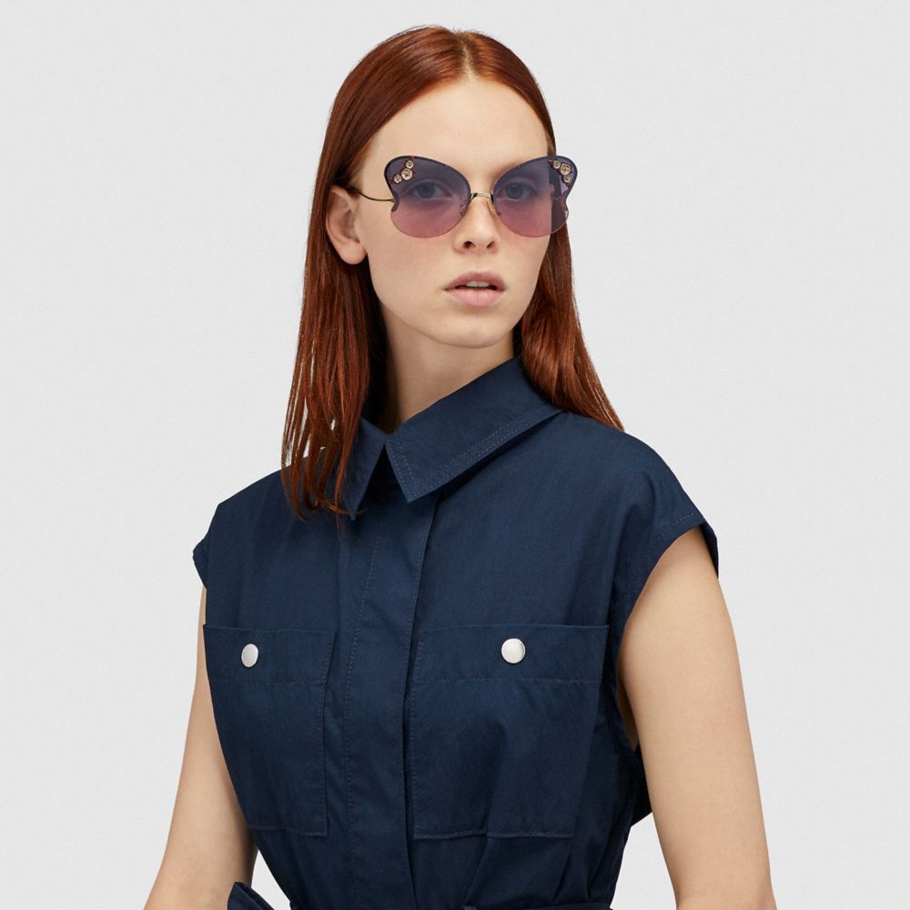 Shaped to resemble butterfly wings, these rimless frames bring a feminine touch to any look. They’re finished with our prairie-inspired Tea Rose appliqué and graceful curved arms.