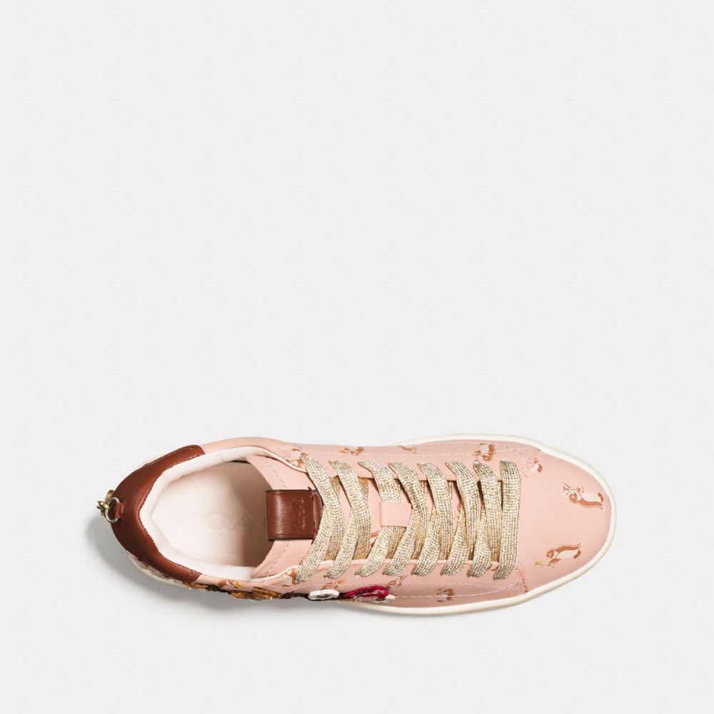Inspired by classic tennis trainers, our popular sneaker silhouette is crafted in smooth leather with a playful penguin motif, dimensional embroidered cherries and leather Tea Rose appliqués. It’s finished with glittery laces and removable charms at the back. It easily conquers the concrete with a recessed ripple outsole for traction.