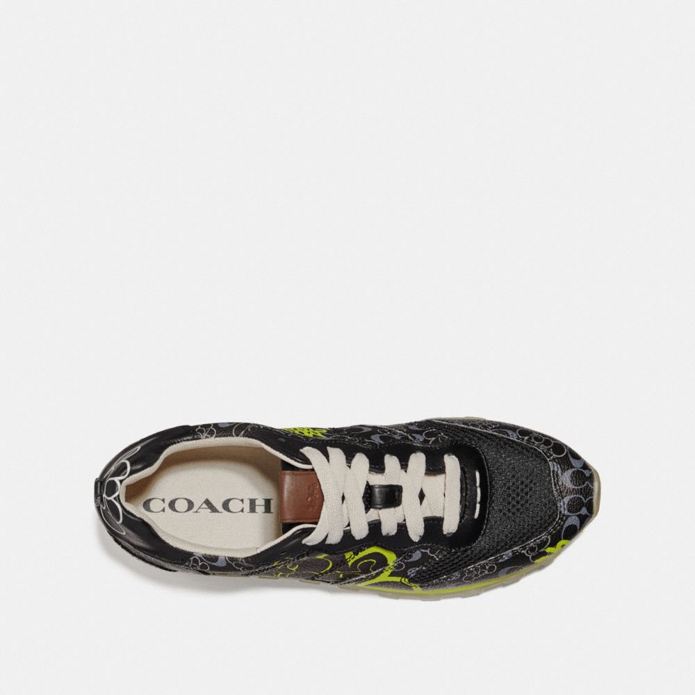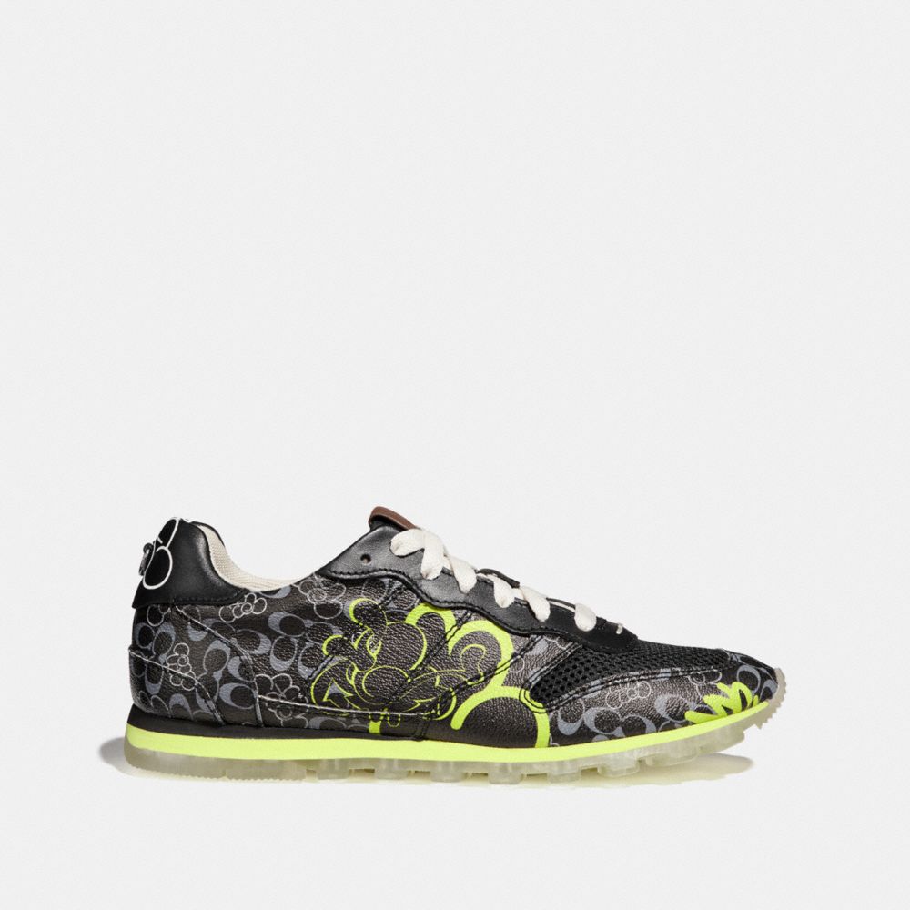 For this limited edition footwear collection, Coach collaborates with five global talents to create dynamic original artwork featuring our Signature. Crafted of canvas and leather, our 1970s-inspired C118 running shoe features a dramatic graffiti-inspired graphic illustration by the New York City, U.S.-based visual artist GIZ."