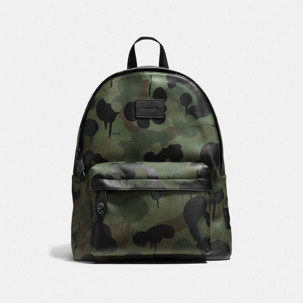 The latest Campus Backpack combines the ruggedness of pebble leather with a playfully subversive drip-leopard print by Gary Baseman reimagined in camouflage. Multiple pockets and room for a laptop or tablet offer flawless functionality within.