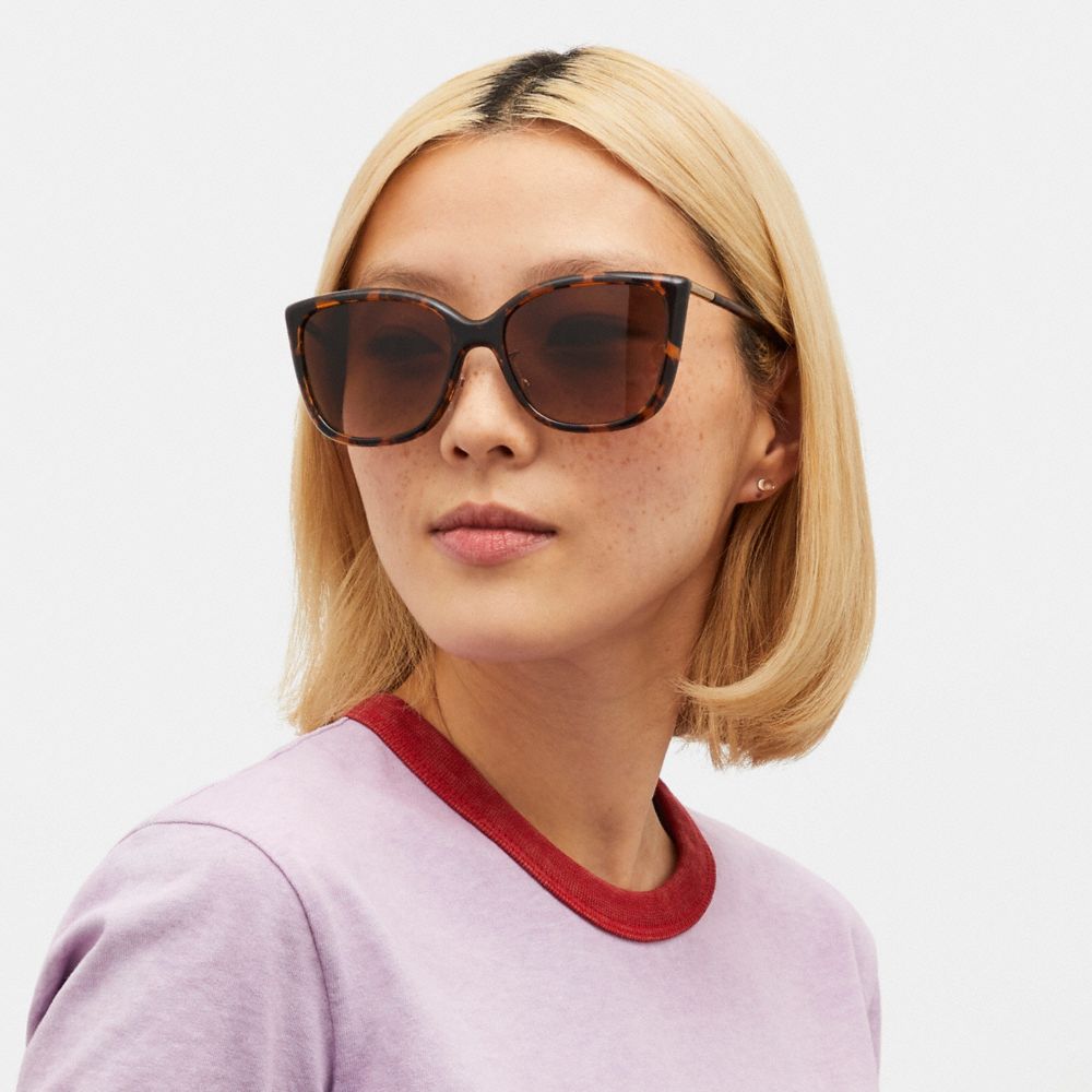 An oversized take on an iconic shape, these cat eye shades offer full UV protection. They’re finished with Coach hardware at the temple for a heritage touch.