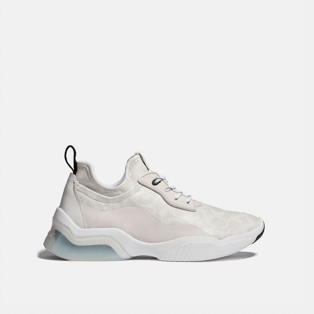 Built for the urban obstacle course, our lightweight Runner is made with proprietary Coach CitySole technology for maximum comfort and flexibility. Based on traditional running shoes, this sneaker sits at the intersection of fashion and function. Crafted of our Signature canvas and lightweight leather, it features a Coach TPU for maximum stability and a layer of shock-absorbing cushioned pods that provide all-day support. It’s finished with a grooved sole for superior movement and traction. Your feet will thank you.