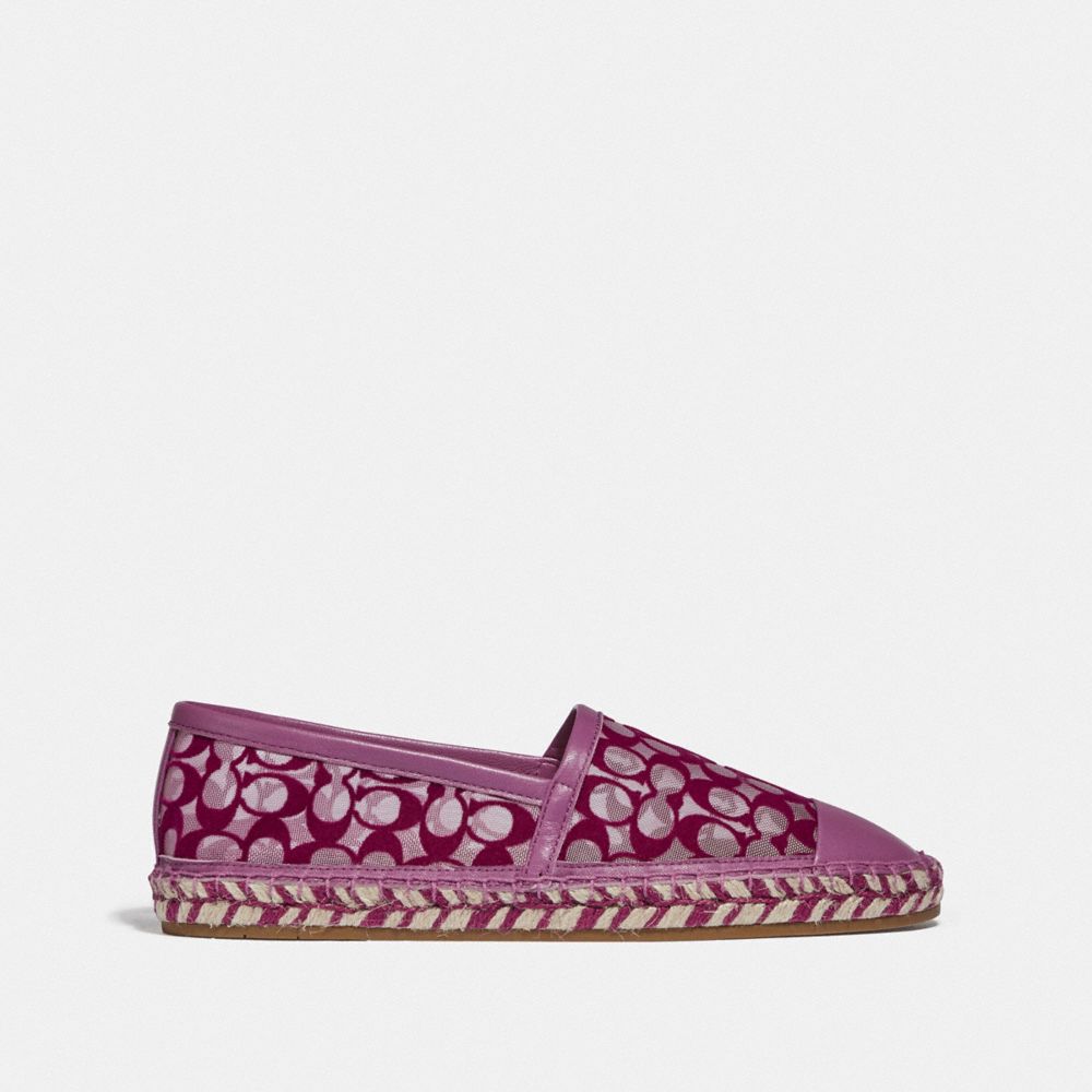 A new take on a warm-weather essential, this laidback espadrille is crafted of smooth leather and breathable mesh flocked with our Signature. The comfortable slip-on design is finished with bi-color woven jute trim and a rubber sole for great traction on city streets and country lanes.