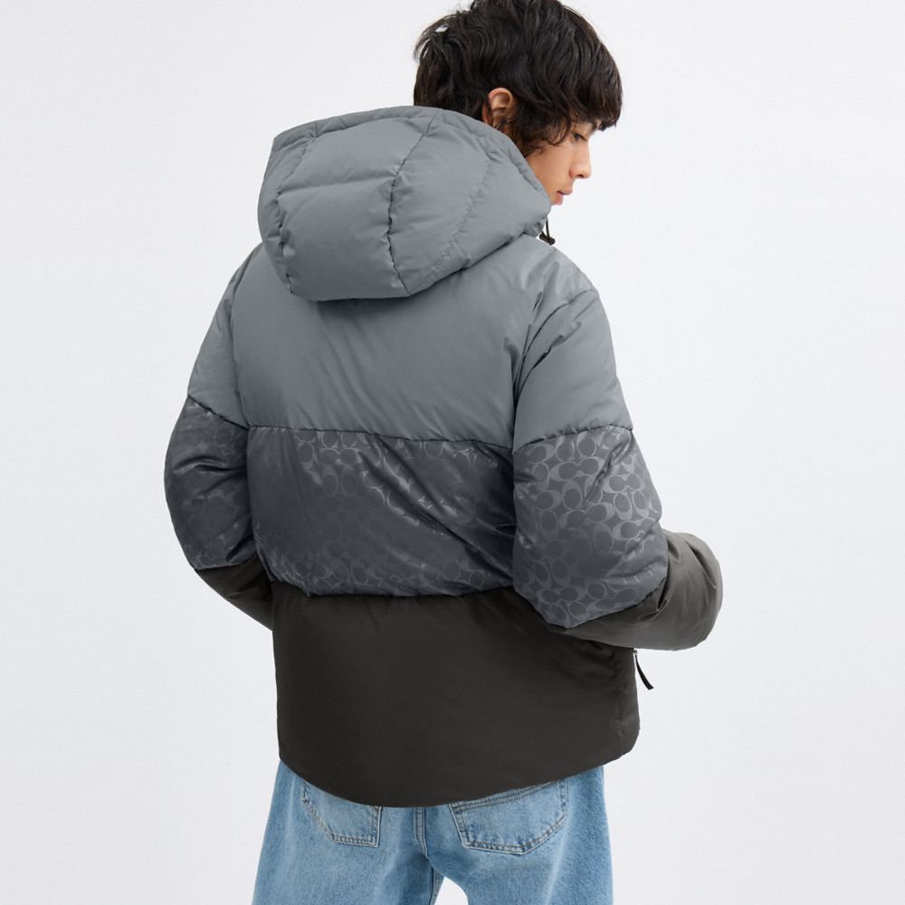 COACH®,Colorblock Down Jacket In Recycled Polyester,Polyester,Recycled Polyester,Down,Puffer,Quilted,Drawstring,Color Bloc...,Multi Color,Scale View