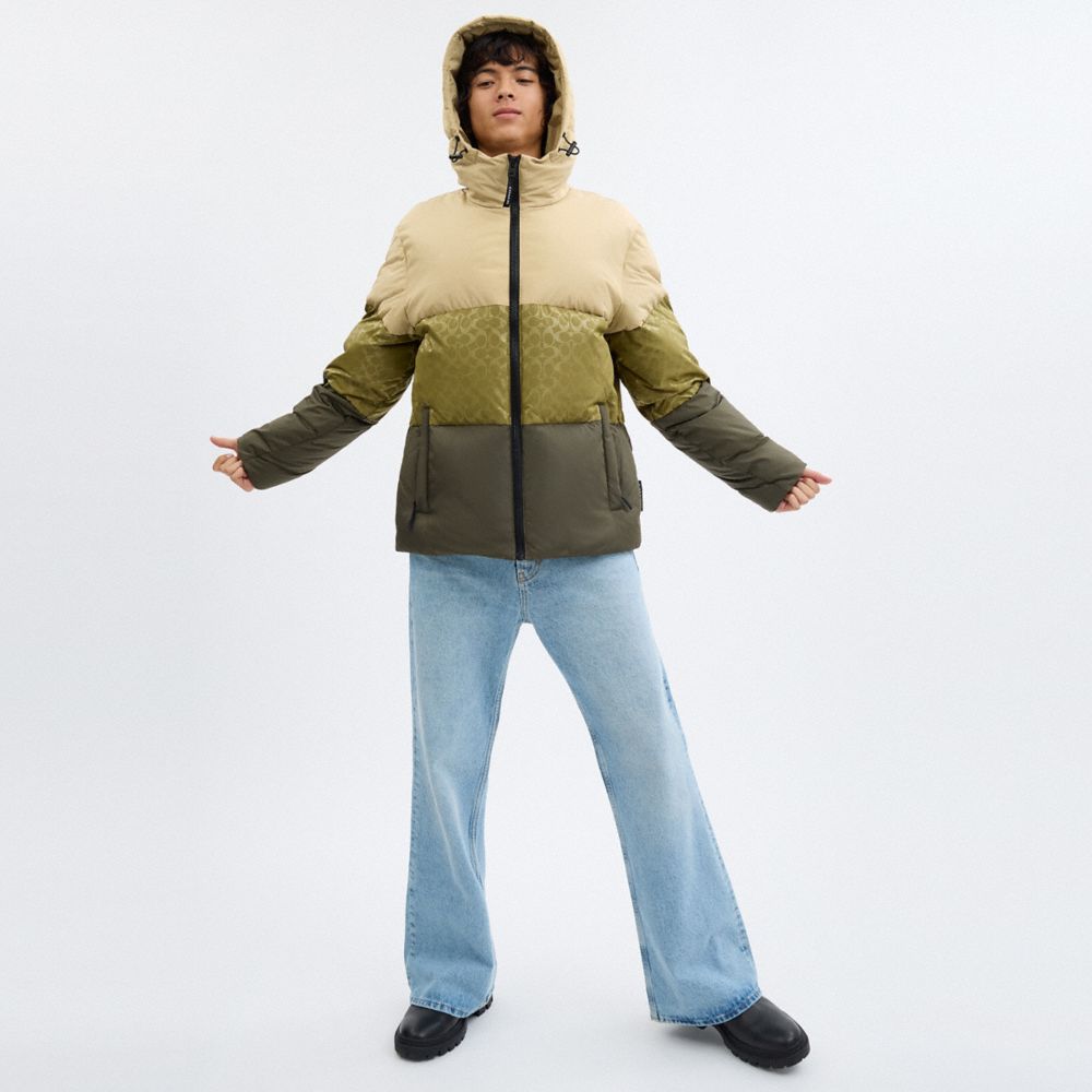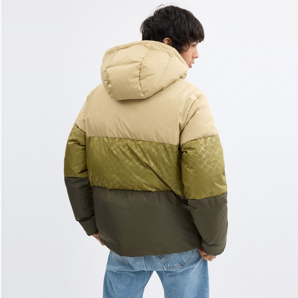 COACH®,Colorblock Down Jacket In Recycled Polyester,Polyester,Recycled Polyester,Down,Puffer,Quilted,Drawstring,Color Bloc...,,Scale View