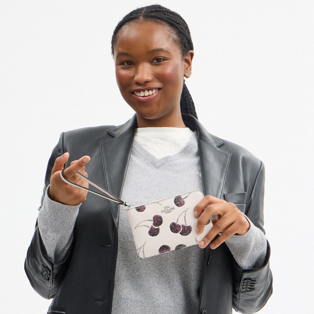 Corner Zip Wristlet With Cherry Print