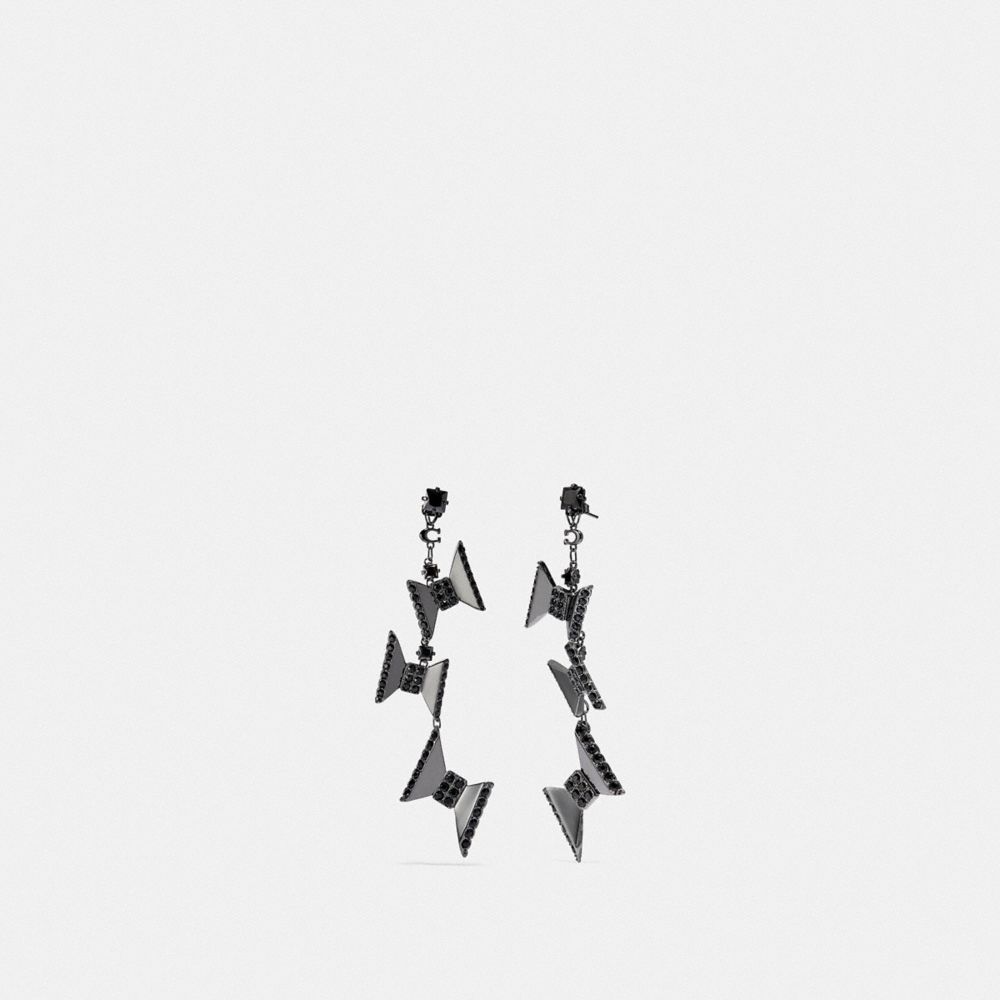 These drop earrings feature a feminine bow design inspired by the glamour of 1920s Art Deco. It's accented with dramatically dark brilliant crystals and finished with a Signature-and-stone chain.