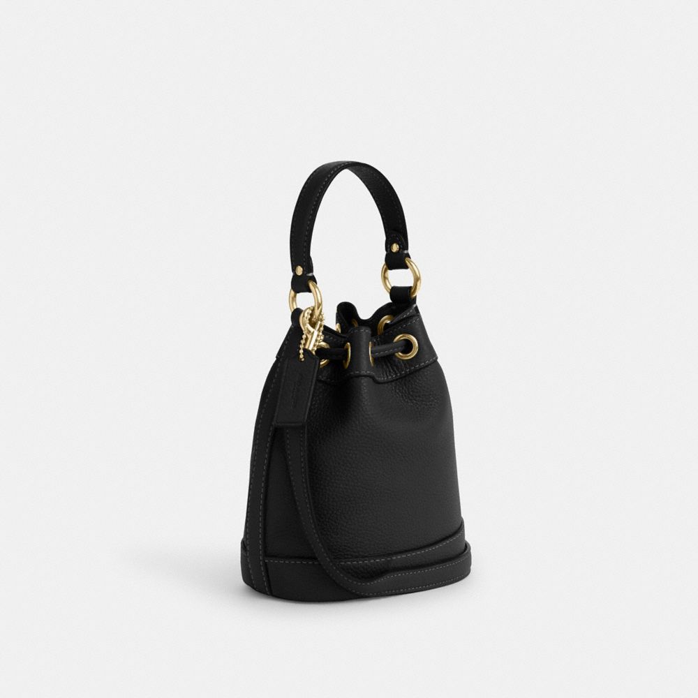 Embrace the blend of fashion and function when it comes to choosing a women's leather bag with our Dempsey Drawstring Bucket Bag. This leather purse is a top handle triumph, and it's one of Coach's bestsellers. This genuine leather handbag, a paragon of the hobo spirit with a modern twist, marries accessibility with luxury. Its refined pebble leather exterior opens to a well-organized interior, making it a quick favorite in women's handbags for anyone who appreciates its style.
