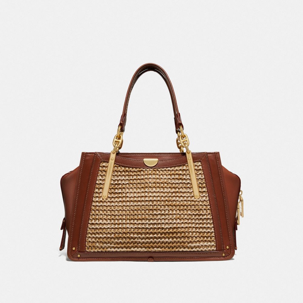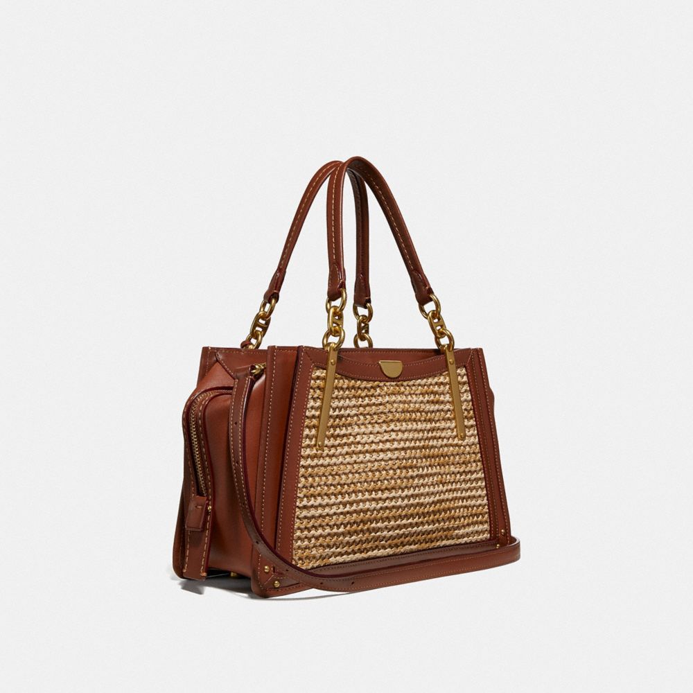 The Dreamer is our new take-everywhere bag, inspired by the endless possibilities of New York City. Crafted in refined leather and textural woven raffia, our spacious tote features a three-compartment design, modern hardware and a Signature charm.