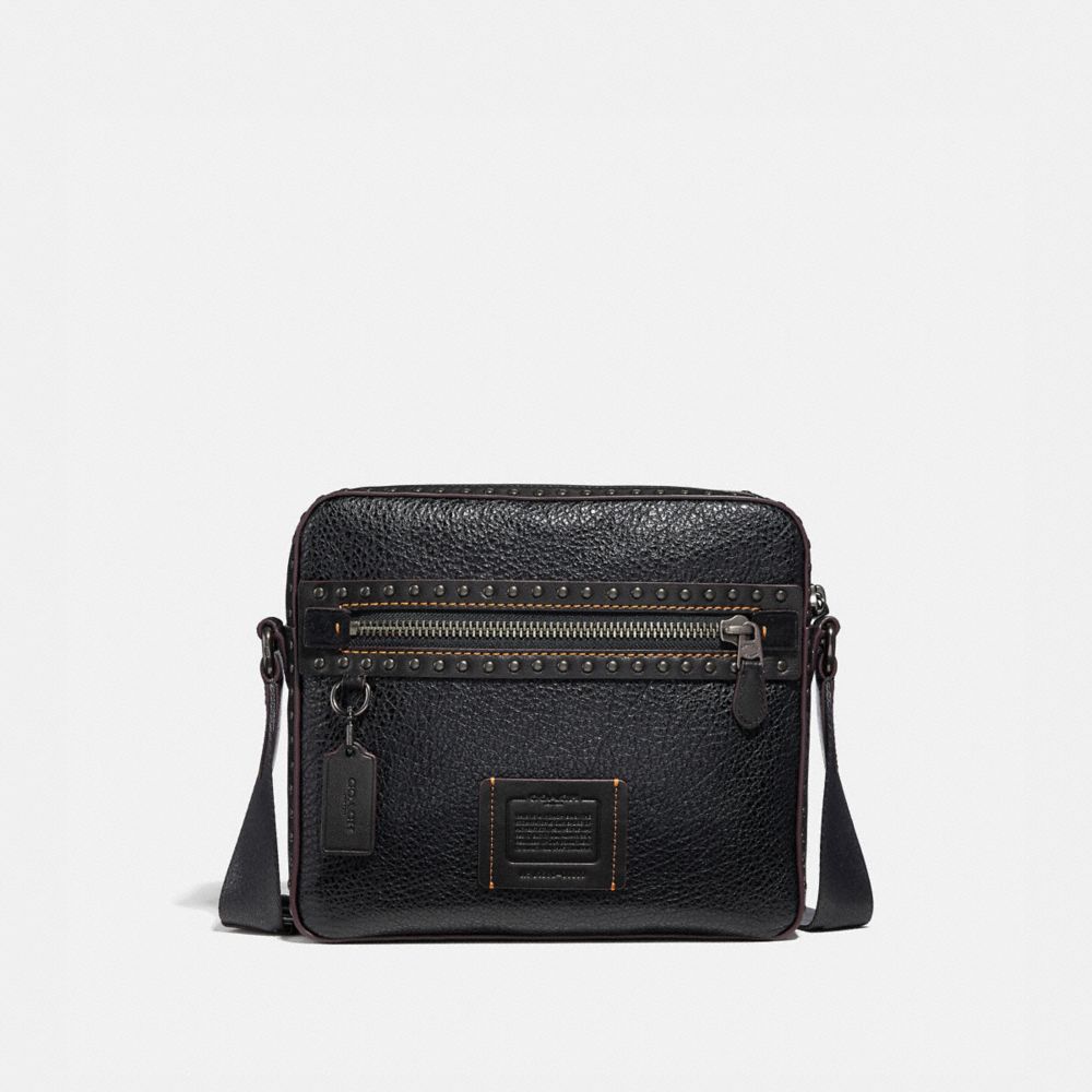 The Dylan is inspired by flight bags from the 1970s. Crafted in a mix of leather and suede finished with polished rivet detailing, the multifunction zip and slip pockets make it a well-organized, hands-free style for travel or work.