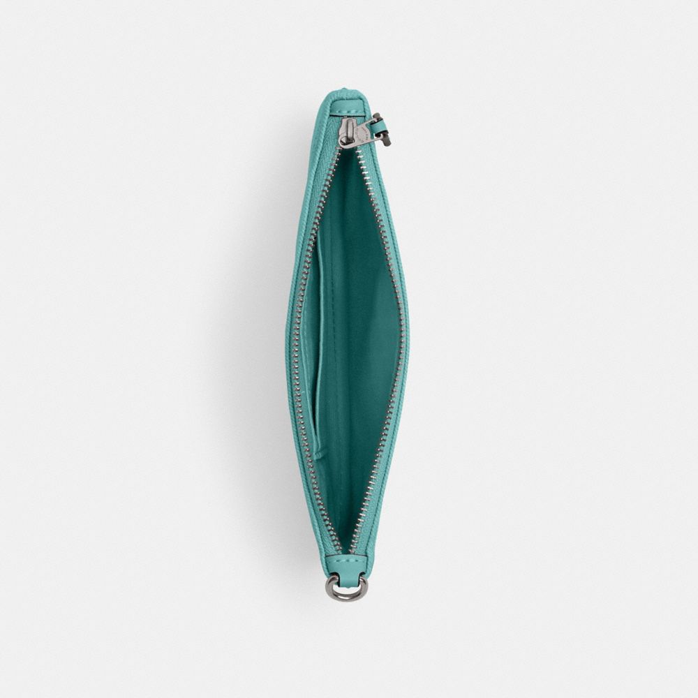 COACH®,Essential Small Wristlet,Calfskin Leather,Denim,Leather,Pouch,Wristlet,Logo,Metal,Casual,,Inside View,Top View