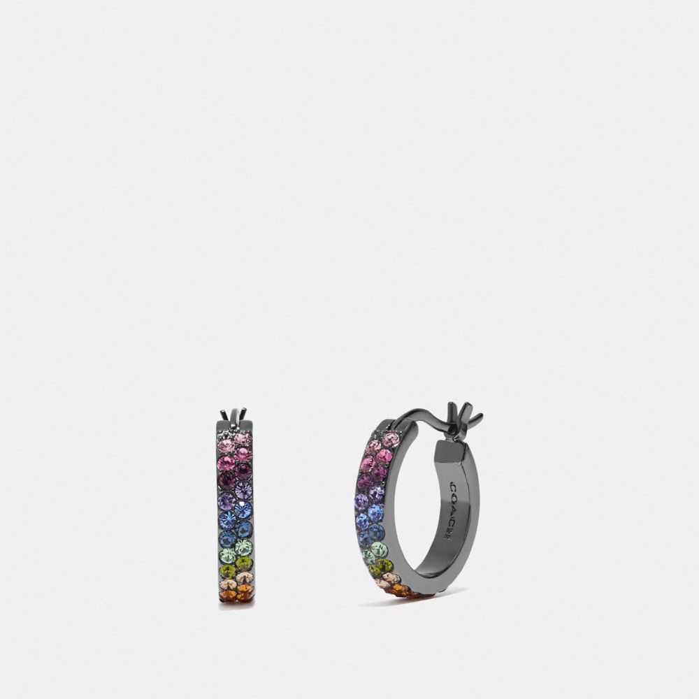 These delicate hoops hug the earlobe for an elegant minimalist look. Embellished with colorful crystals, they add a fun, vibrant touch to any look.