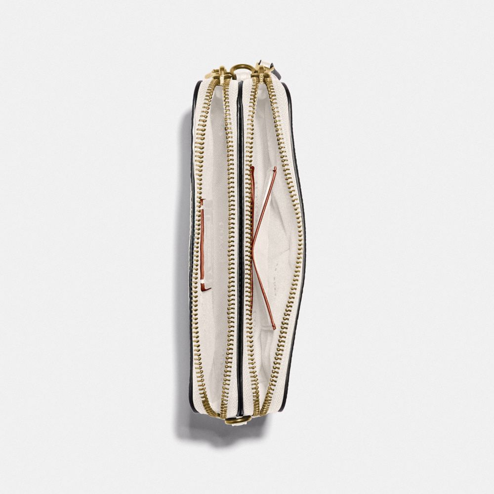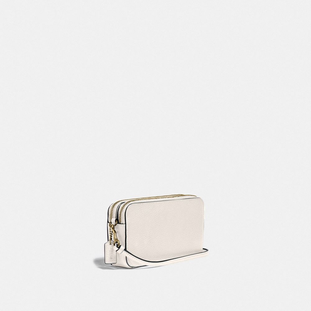 A total multitasker, our perfectly sized Kira can be worn as a crossbody, a wristlet, carried as a clutch or used as a pouch in a larger bag. Crafted of polished pebble leather, it has two zippered compartments and a convenient center slip pocket to keep you organized with room for a phone, cards, keys and other accessories. The sleek style comes with a wrist strap and an adjustable shoulder strap.