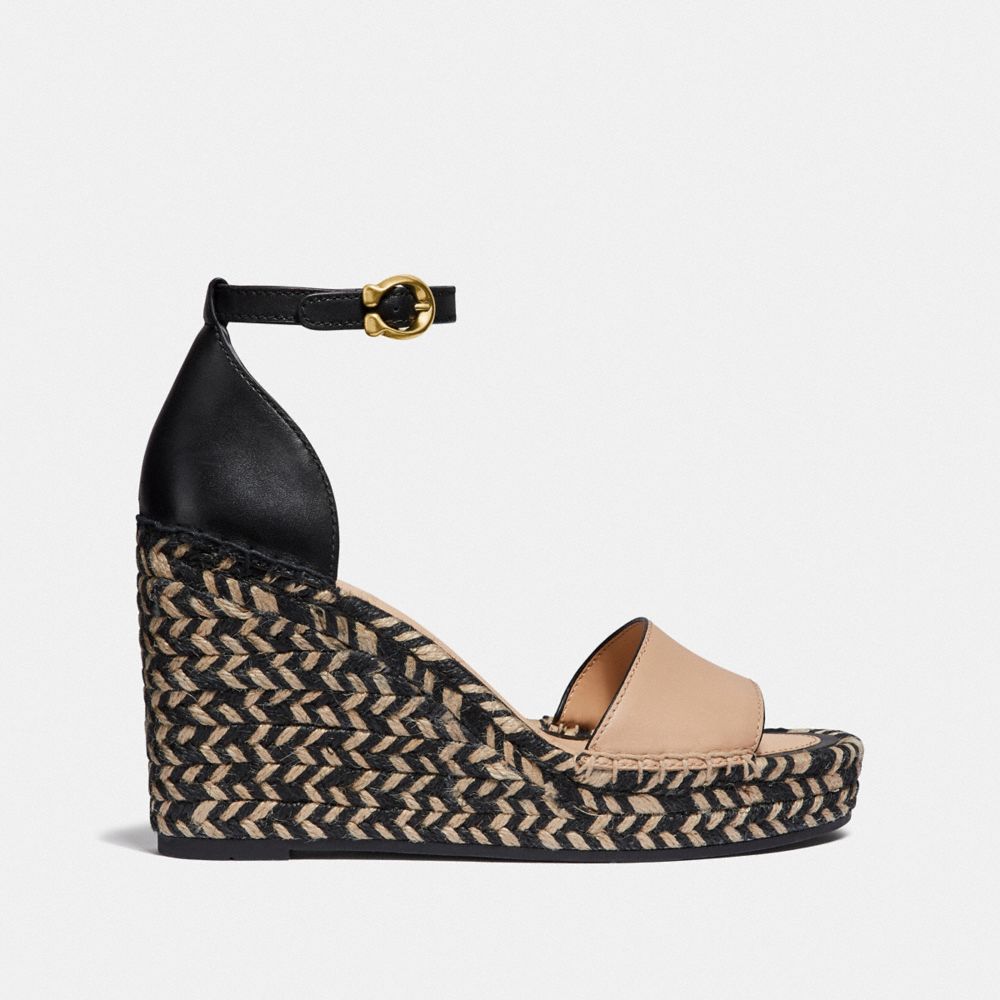 Elevate any warm weather look with our open-toe Kit wedge espadrille. Crafted in two-tone leather with a jute platform, it’s finished with our Signature buckle for an iconic Coach touch.