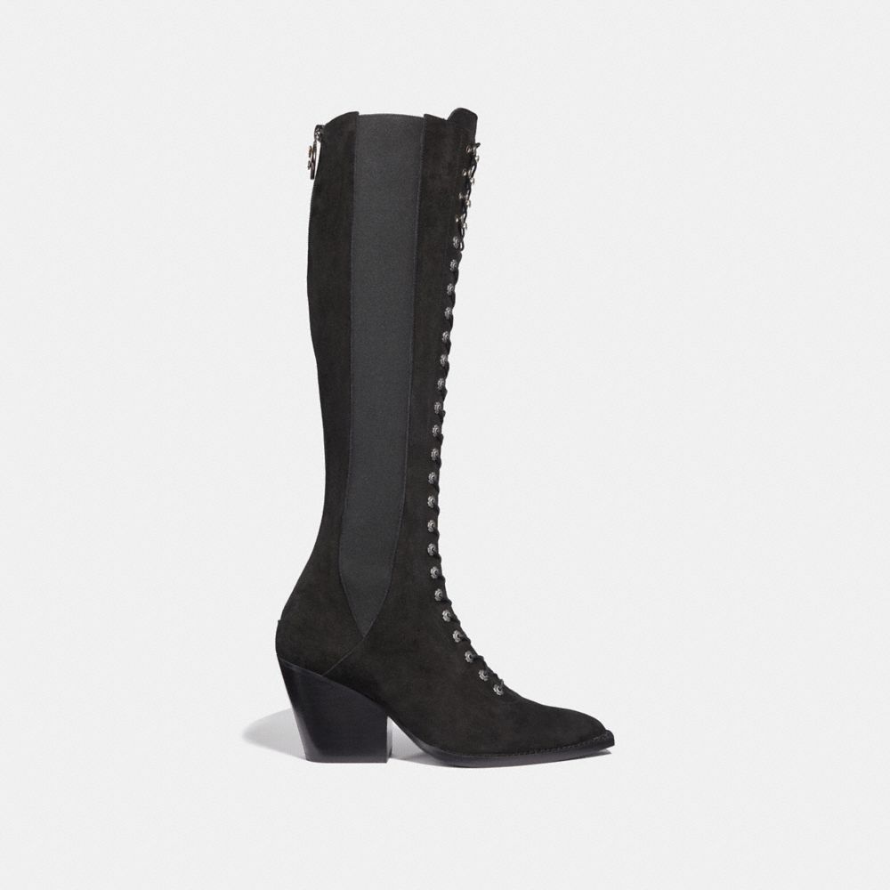 Modern with a ‘70s attitude, this lace-up boot is crafted in soft suede and detailed with our Tea Rose metal eyelets. Featuring a Western-inspired pointed toe and chunky block heel, the versatile style looks great with flowy dresses or jeans.