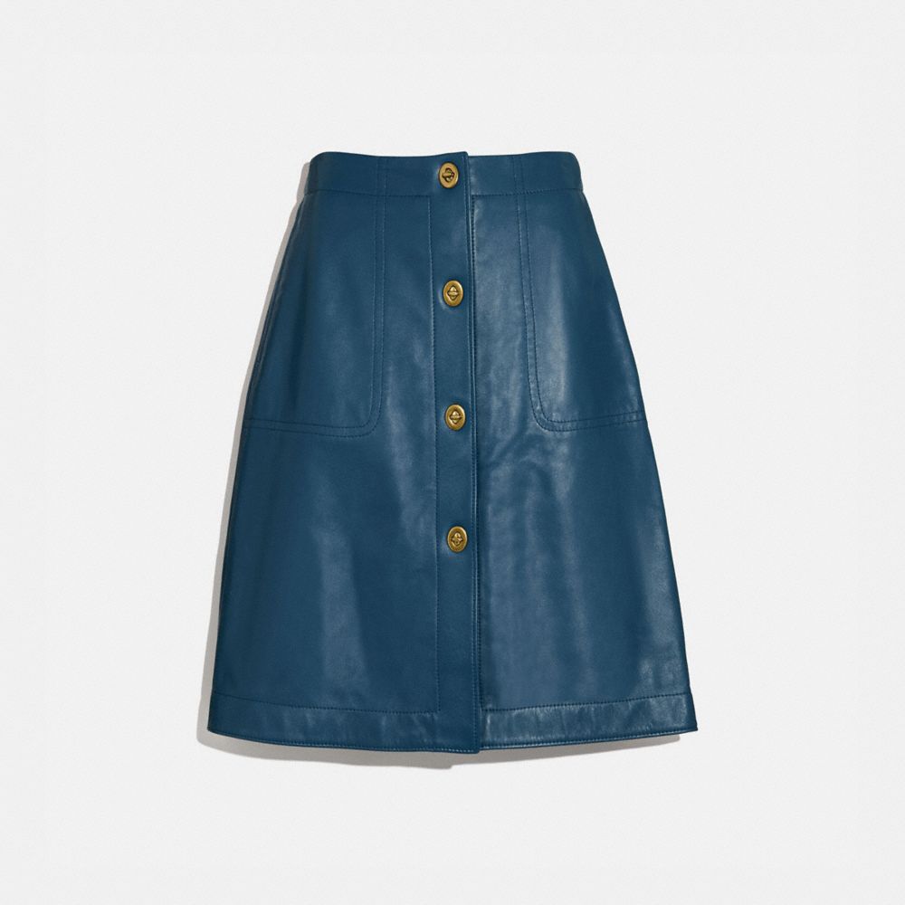 Turn it, lock it, this midi skirt features our iconic turnlock hardware. The A-line silhouette is crafted of supple nappa leather with a rich, buttery hand feel.