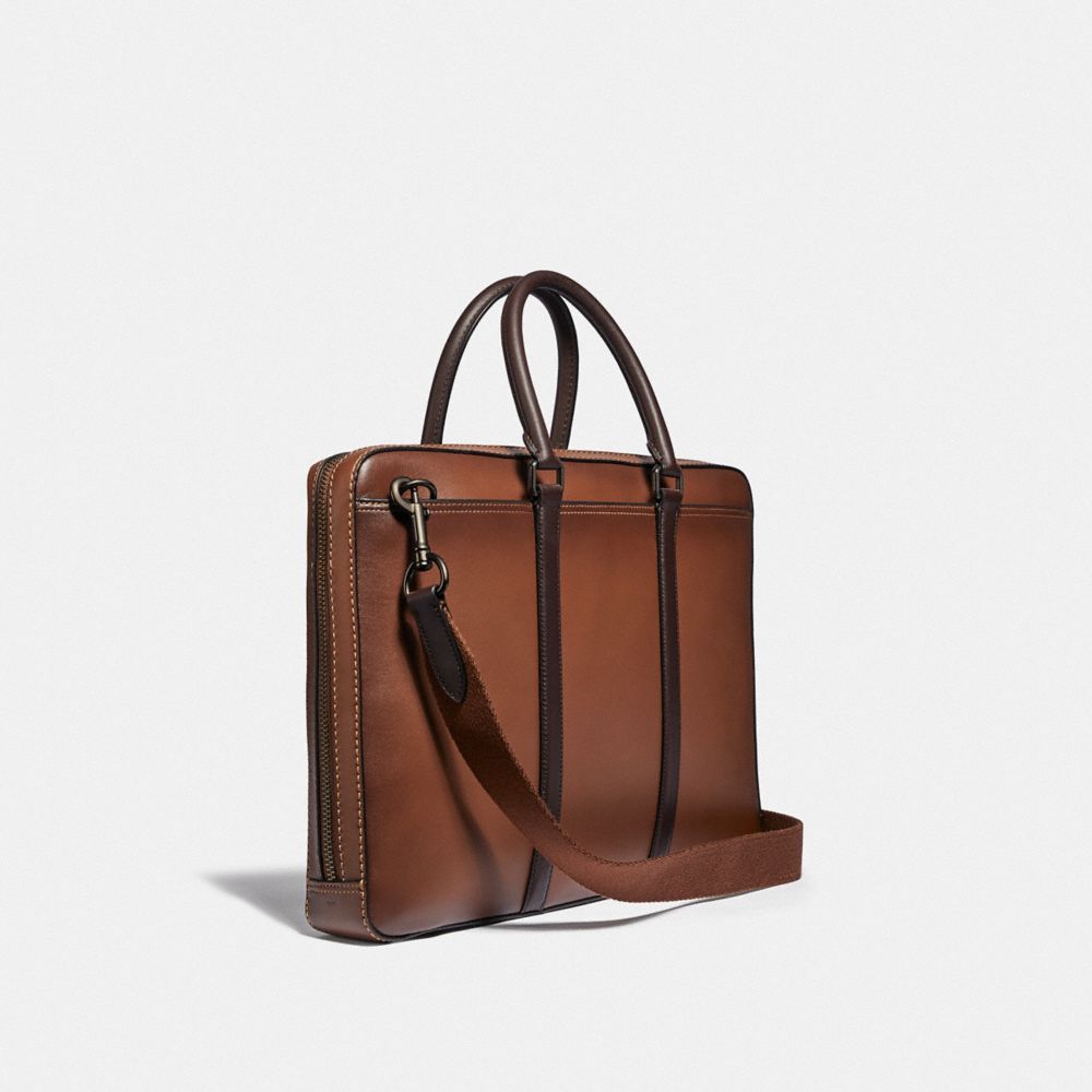 The Metropolitan is a no-fuss brief made for the modern man. Crafted of our buttery soft glovetanned leather, this lightweight, streamlined bag is designed with multifunctional pockets and an interior sleeve that holds a 15" laptop.