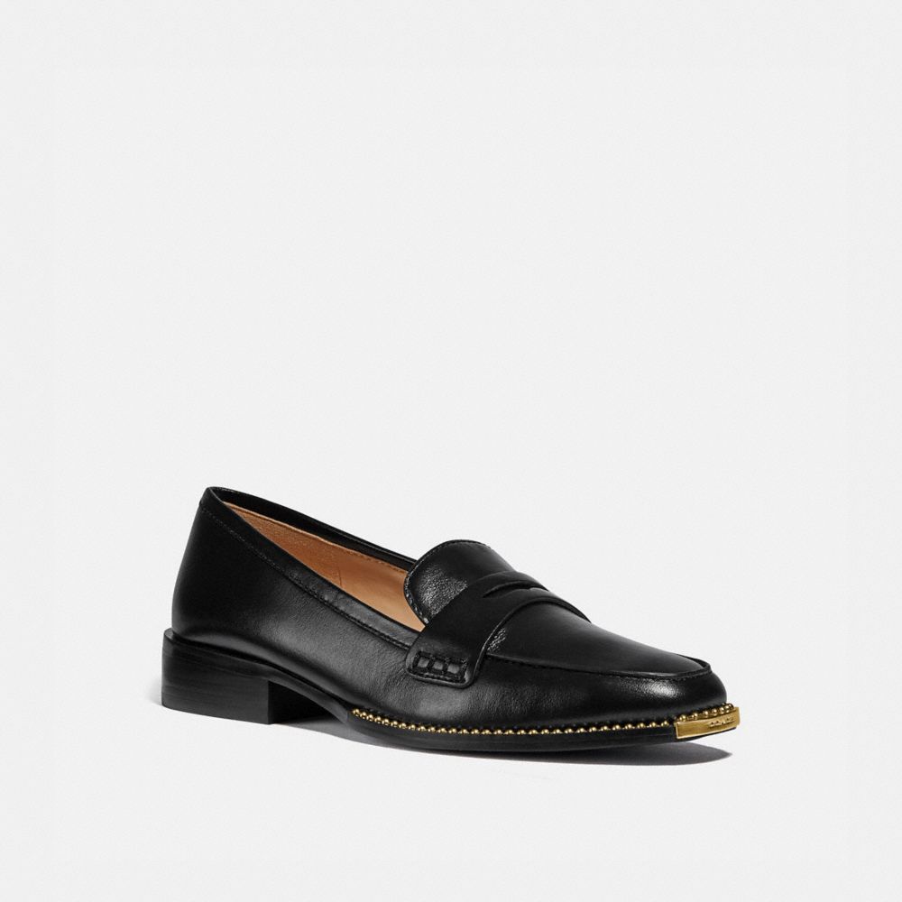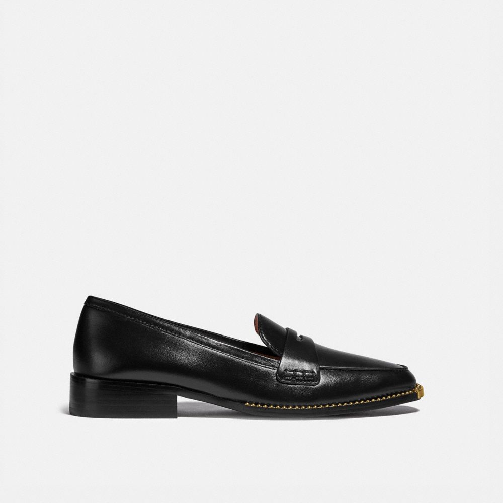 The Nelli loafer reimagines everyone's favorite prep-school-inspired style with our modern Coach toe plaque and gleaming beadchain trim for an unexpected touch of shine. Crafted of smooth leather, it’s finished with a classic penny keeper and a no-slip rubber sole.