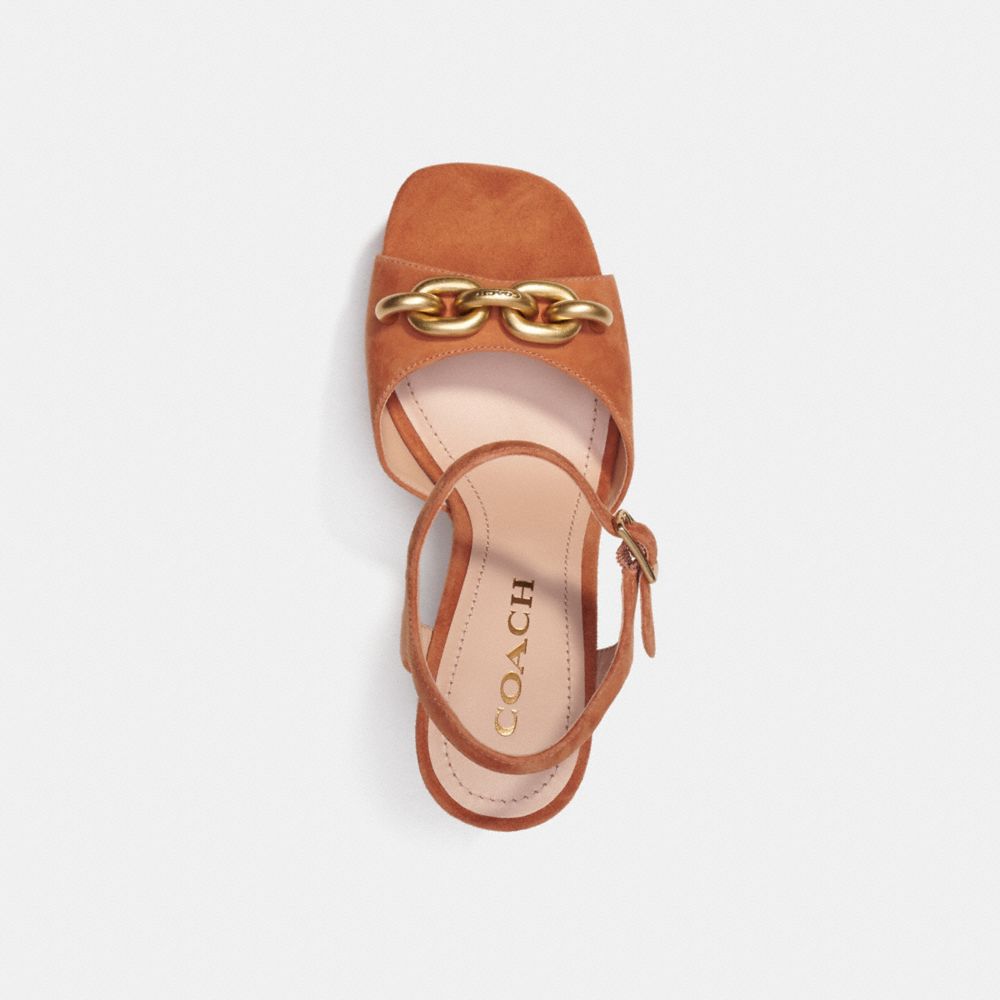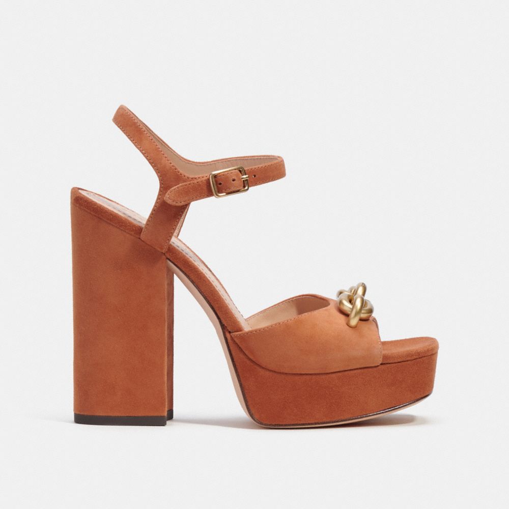 Accented with a gleaming chunky chain-link detail for rich dimension, our Nicolette sandal sits on a platform and sturdy block heel for dramatic height. Crafted of velvety suede, the open-toe design is a bold look for work days and weekends.