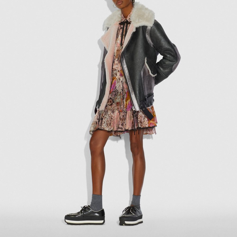 This shearling aviator jacket will only get better with age thanks to a special finish that gradually wears away to reveal layers of gradient leather for a unique vintage effect. Featuring a slightly oversized fit, it's finished with a removable, tiered shearling collar, front flap pockets and metallic leather details.