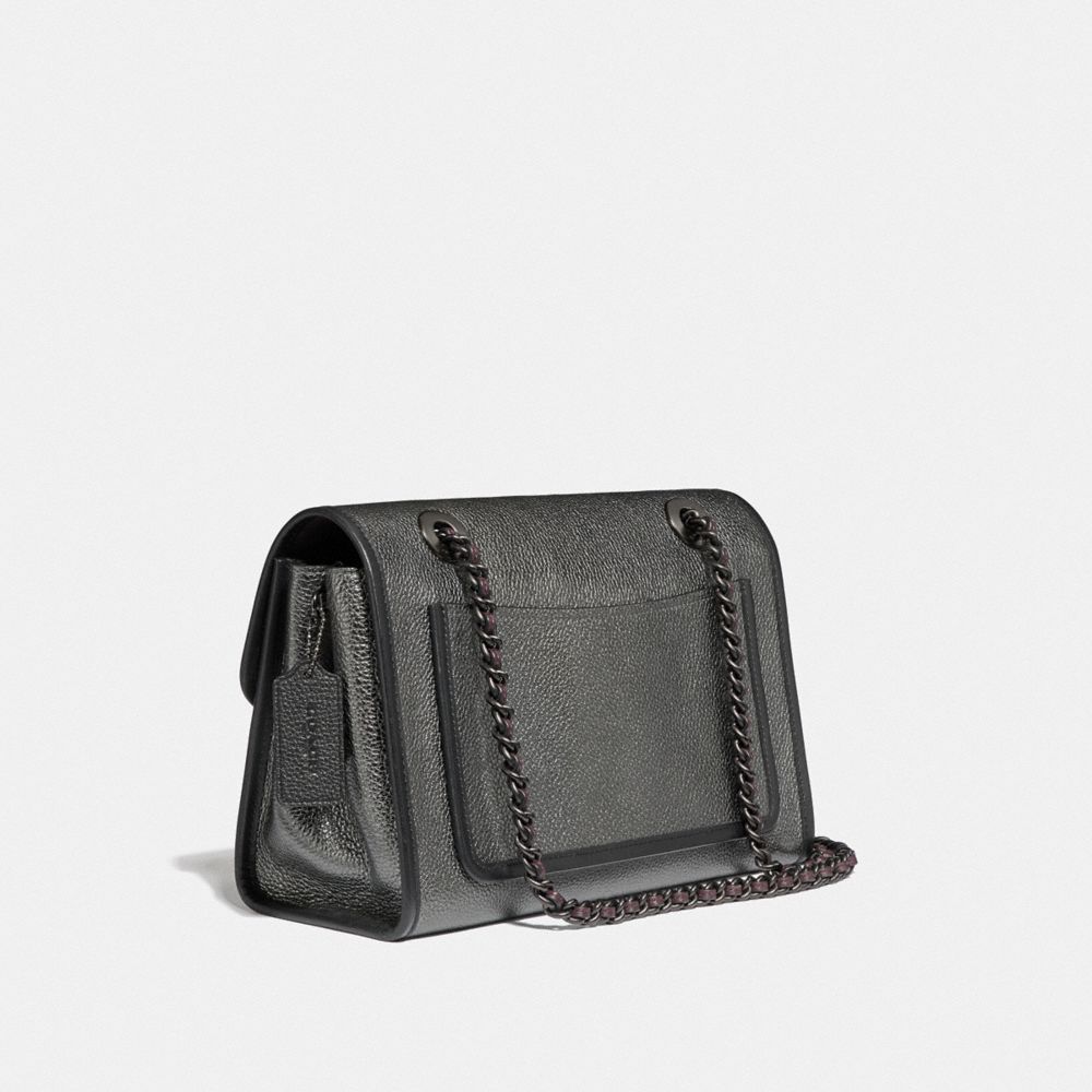 Structured and lightweight, the Parker is a versatile bag in metallic pebble leather that combines uptown elegance with downtown ease. Convert the leather chain strap from long to two short handles.