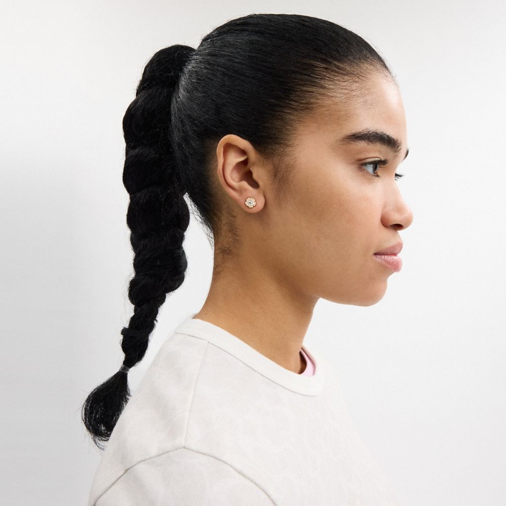 Sparkling with pavé crystals, these studs feature our prairie-inspired Tea Rose motif. They’re finished with a round clutch closure.