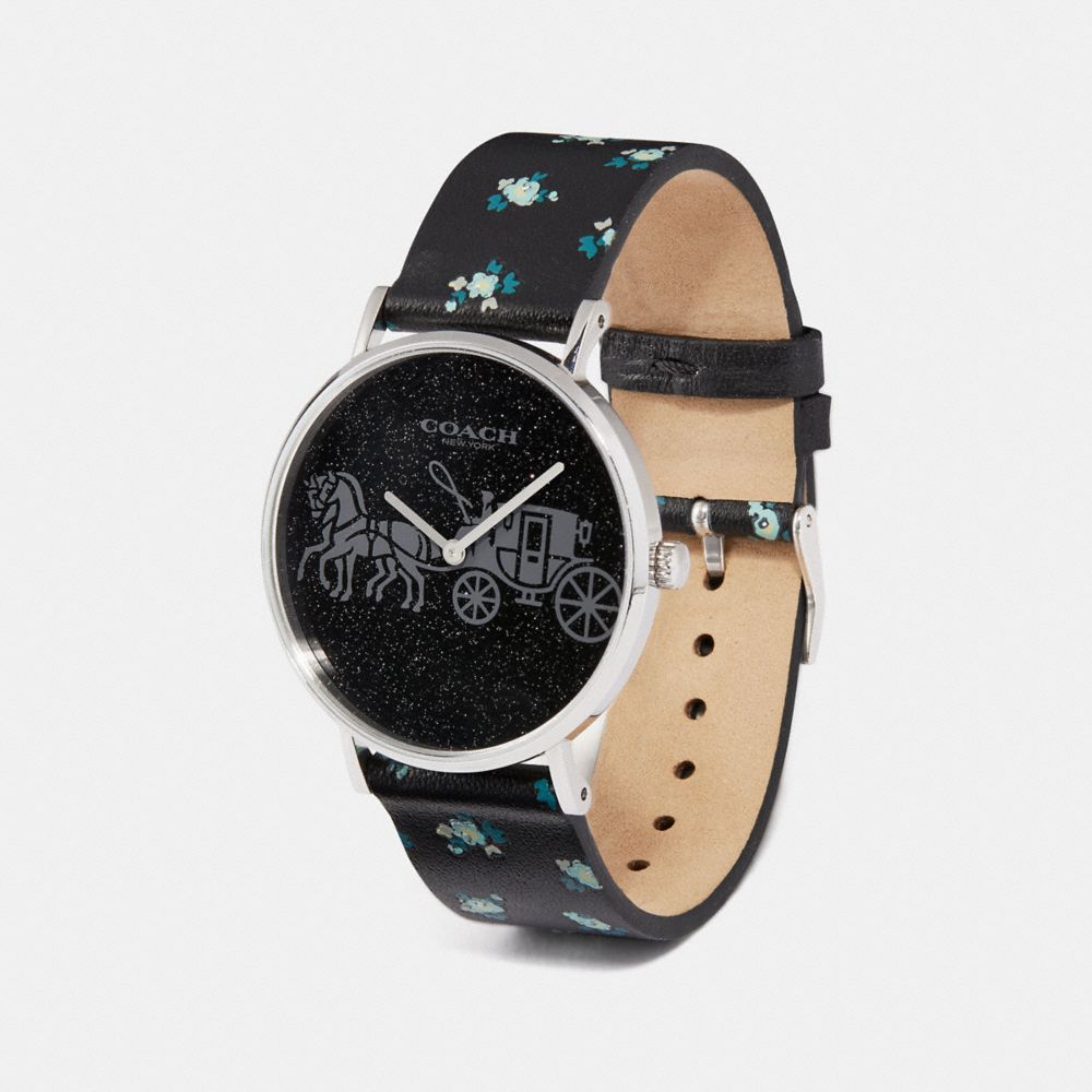 Named for a quiet street in New York City’s West Village, the Perry is a traditional round watch perfect for every day. It’s designed with a floral-printed leather strap and a glitter dial that features our iconic Horse and Carriage motif.