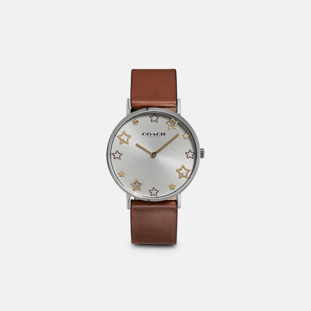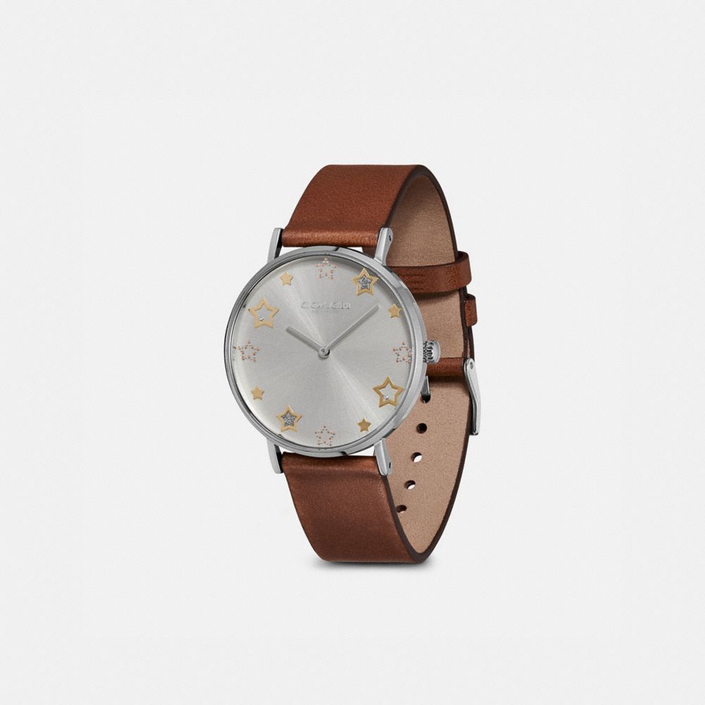 Named for a quiet street in New York City’s West Village, the Perry is a traditional round watch perfect for every day. The stainless steel design is finished with a smooth leather strap and a face detailed with starry markers.