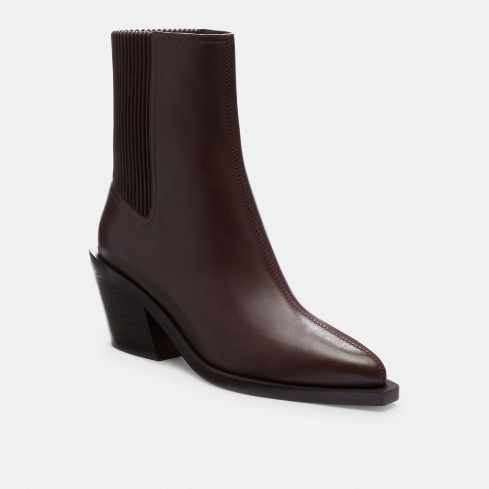 A western-inspired style that’s ready for city streets, our pop-on and go Prestyn bootie is crafted of smooth leather. The angled block heel silhouette is finished with our Signature hardware for a heritage touch.