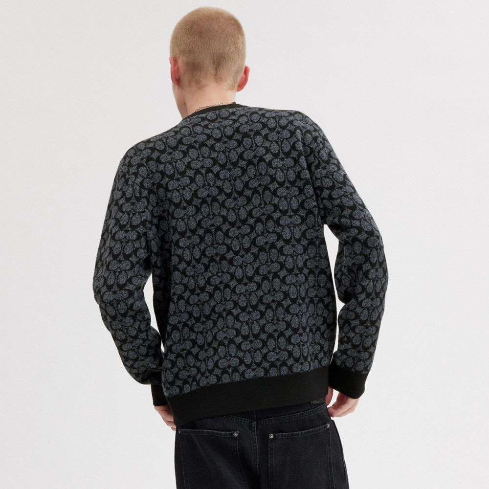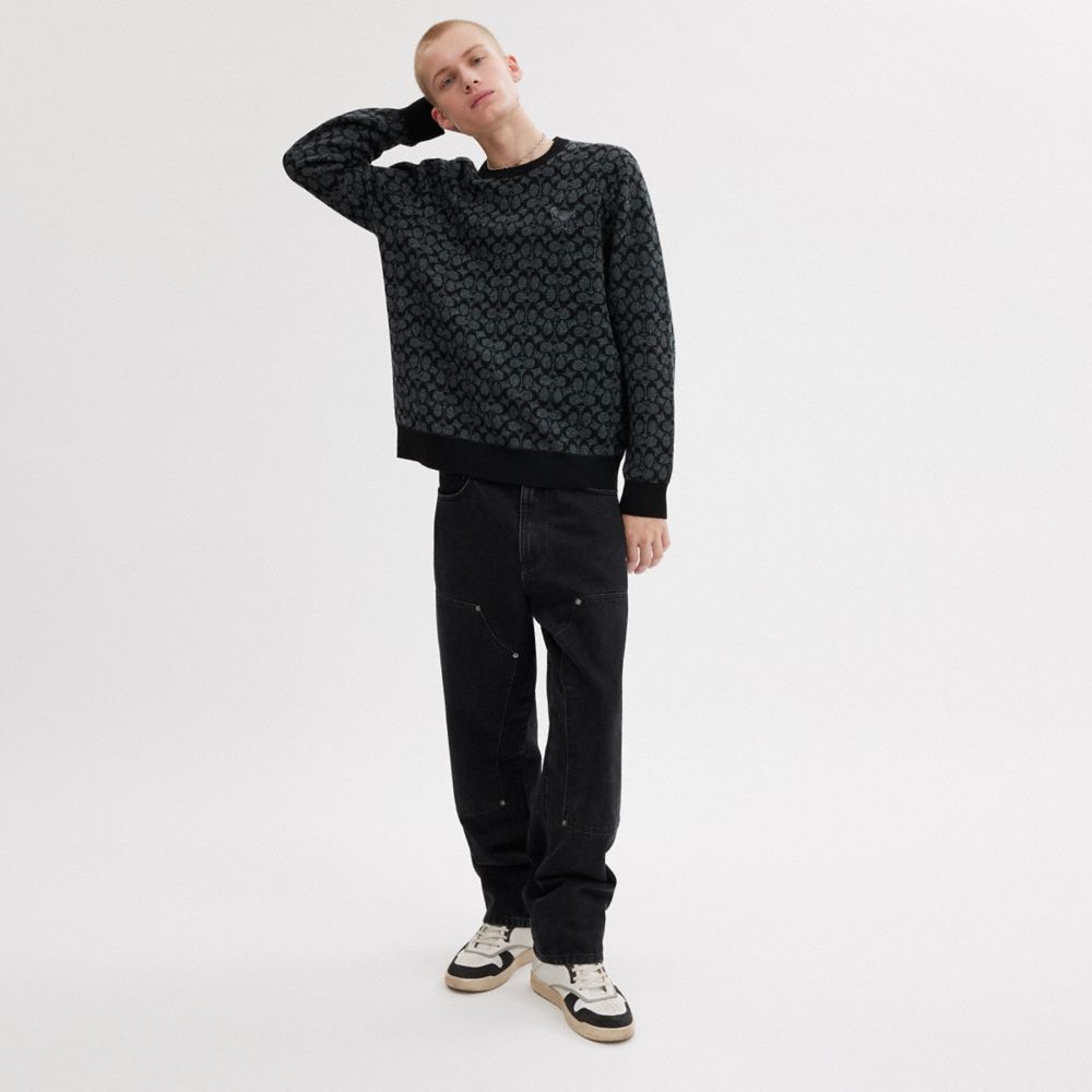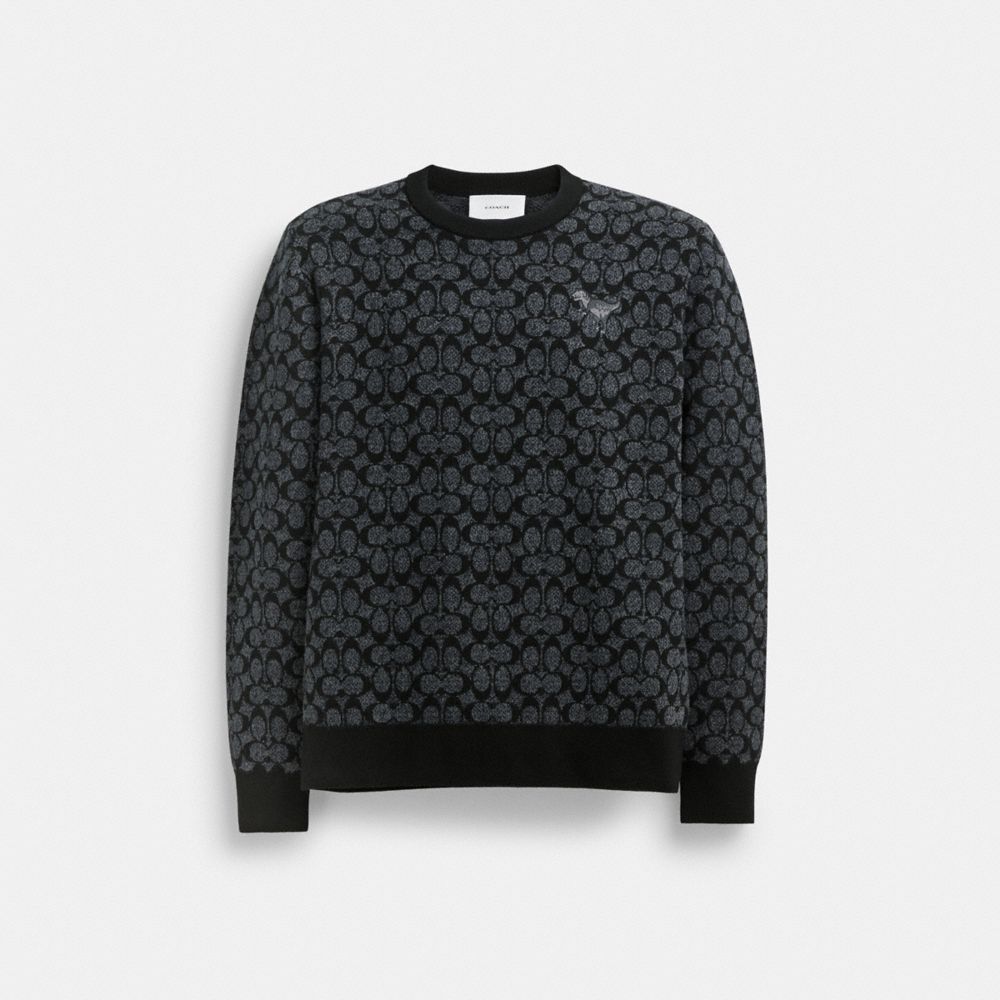 Add our Signature to your style with this cozy wool crewneck sweater. Finished with knit trim and slip pockets, the classic-fit style is woven with our iconic Signature and embroidered with our fun-loving Coach mascot Rexy.
