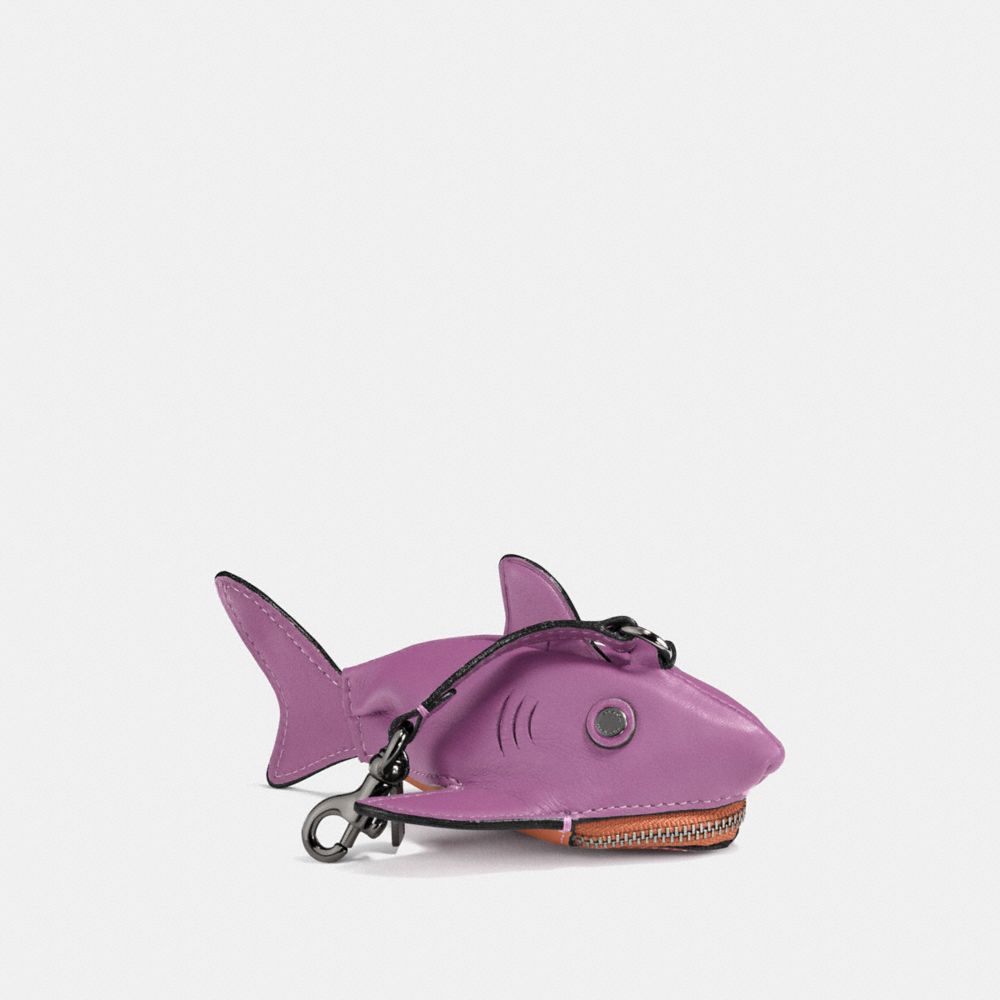 This playful Sharky coin case zips open at the jaws to keep change and other small treasures secure. Crafted in glovetanned leather, it’s finished with unexpected glitter edgestain and a fun pop of color. Talk about a catch.