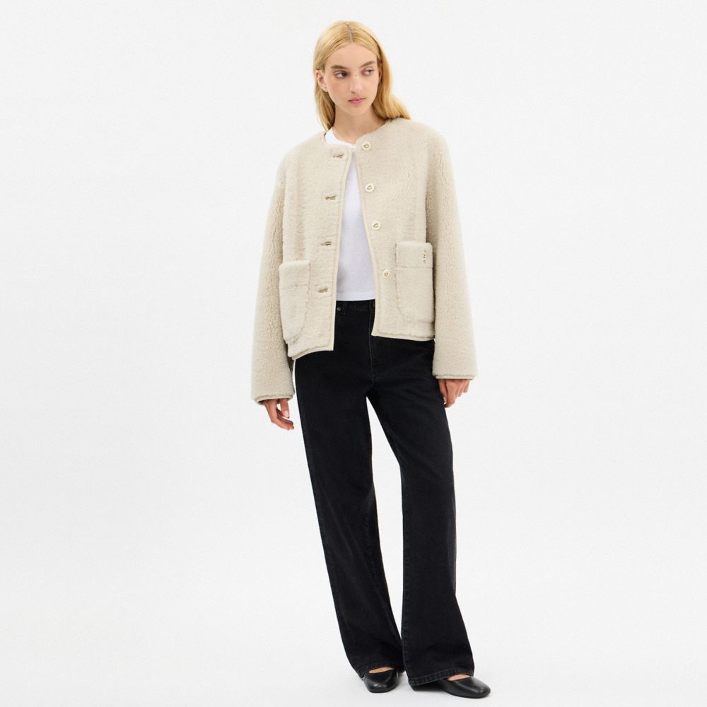 COACH®,Shearling Cardigan Jacket,Shearling,Teddy,Cardigan,Logo,Lined,Heating,Day Party,Cream,Scale View