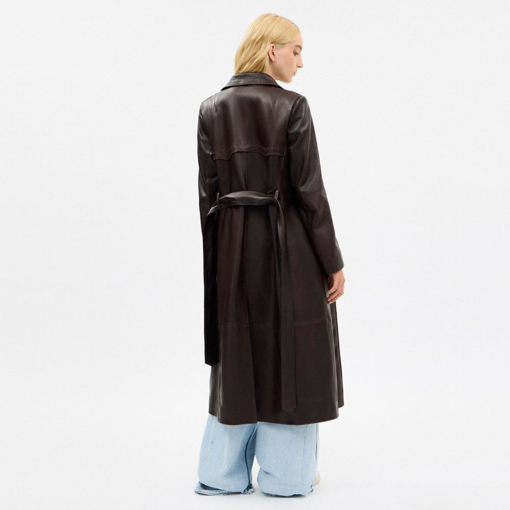 Single Breasted Leather Trench Coat