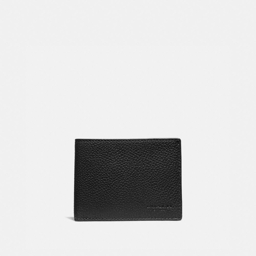 Crafted of polished pebble leather, this slender wallet features six card slots and a full-length bill compartment in a neat bifold design that slips easily into pockets.