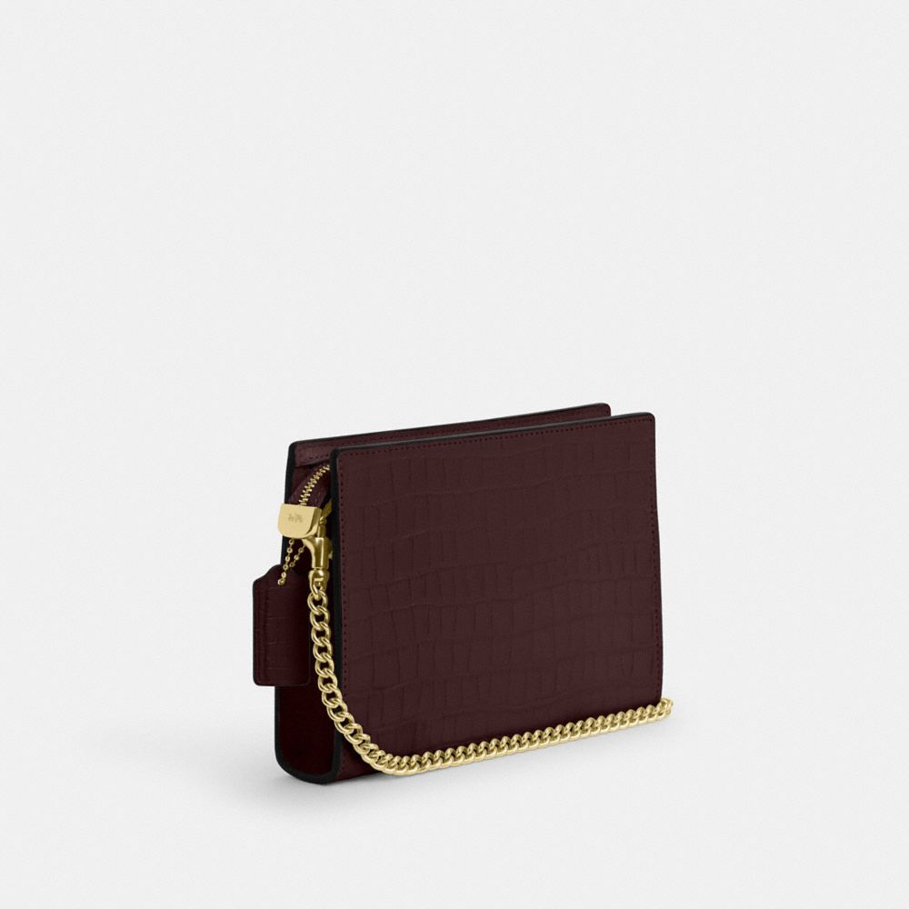 The Slim Crossbody bag is crafted of crocodile-embossed leather and smooth leather for a sophisticated touch. Its compact size is perfect for carrying your essentials—phone, keys and cards—without weighing you down. The zip closure keeps your items secure on the go, whether you're meeting friends or going on a date.